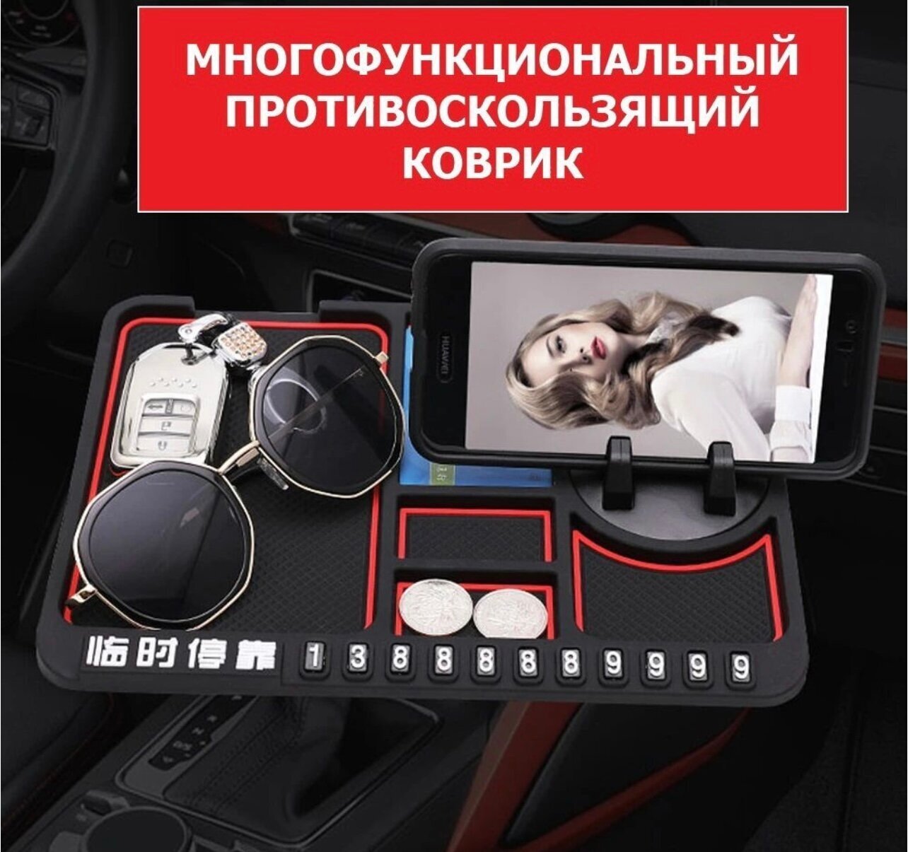 Отзывы на Коврик на панель автомобиля с держателем для телефона и автовизиткой противоскользящий
