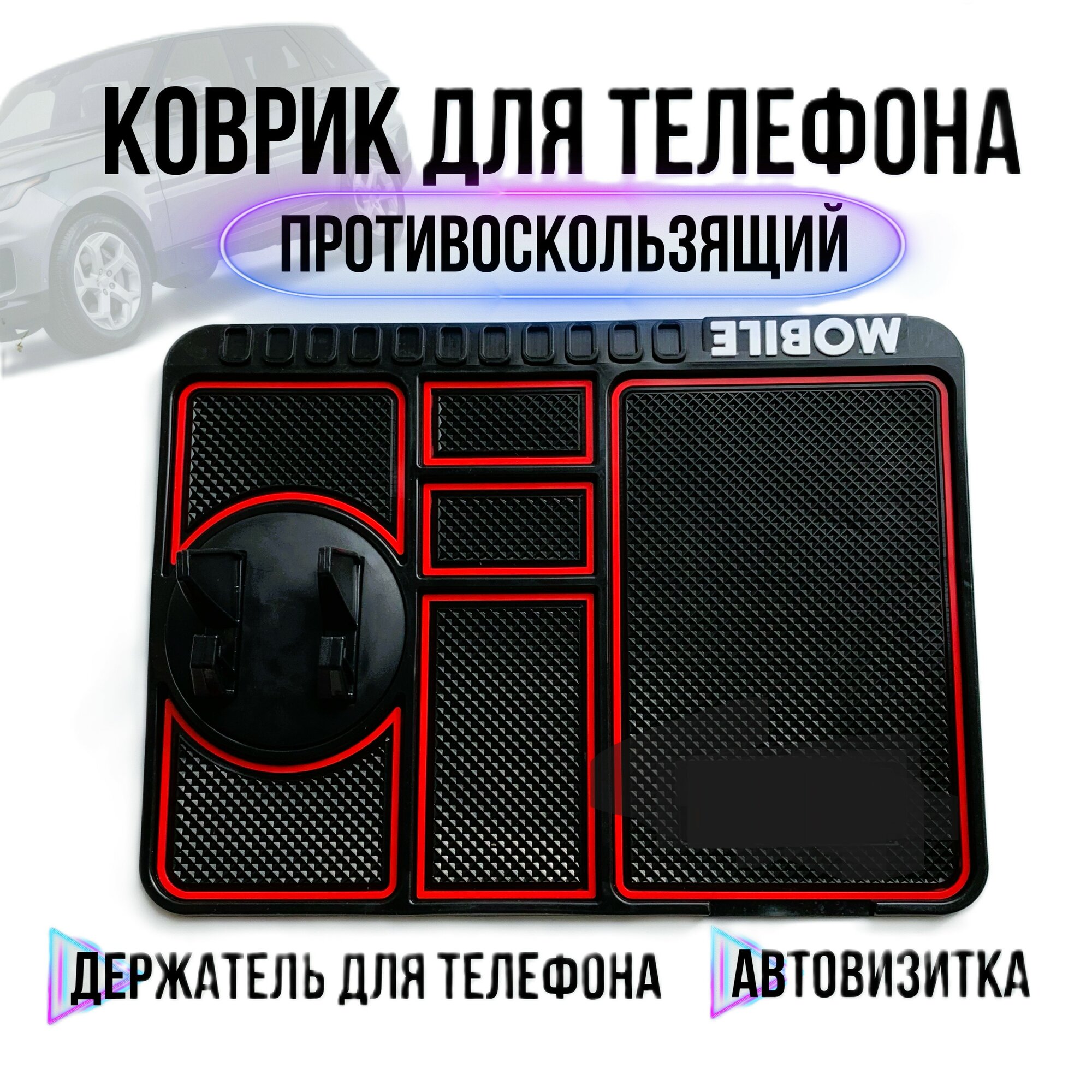 Коврик на панель автомобиля с держателем для телефона и автовизиткой противоскользящий информация:
