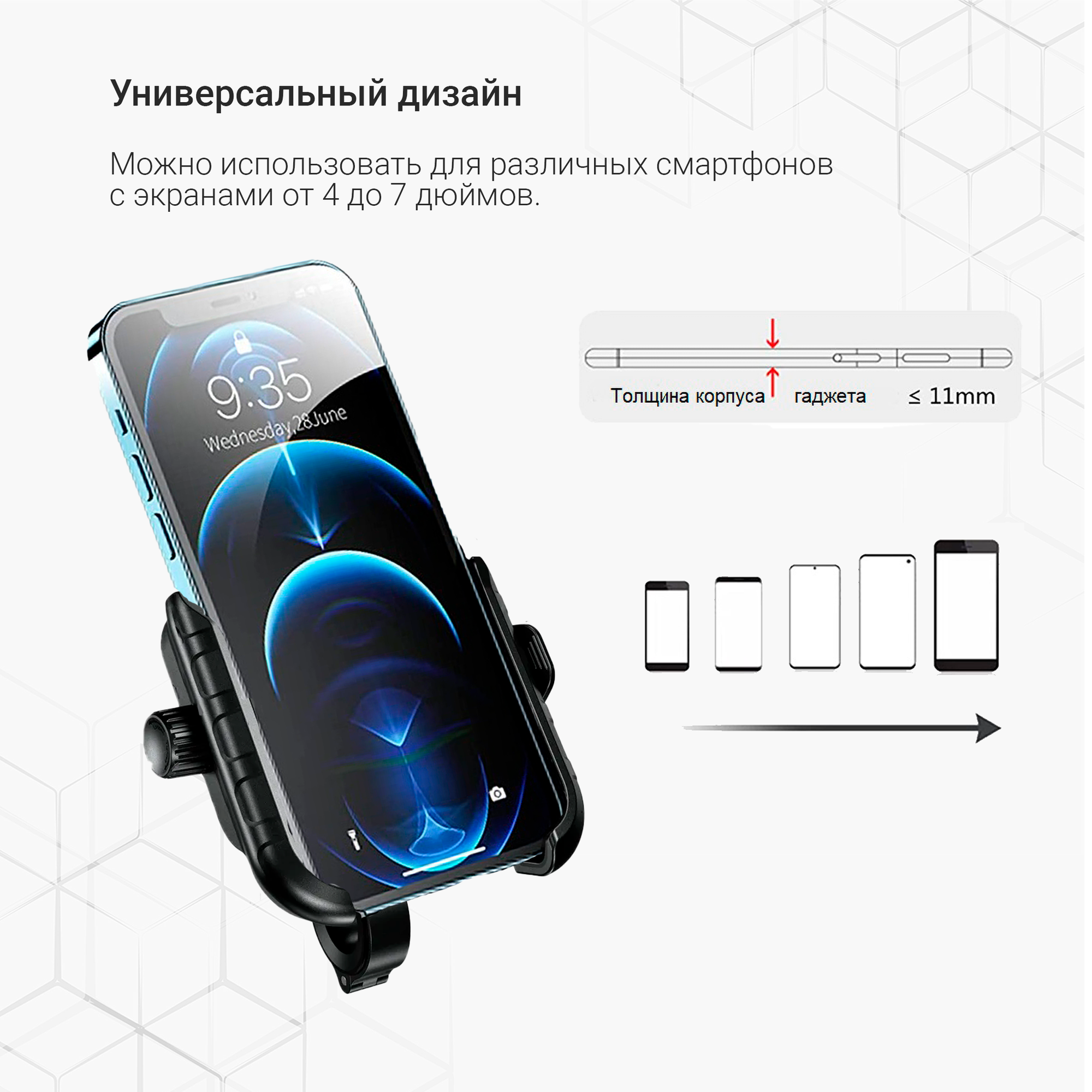Держатель для смартфона быстросъемный на мотоцикл велосипед, Kewig KWG-M8sp, шириной до 90мм информация: