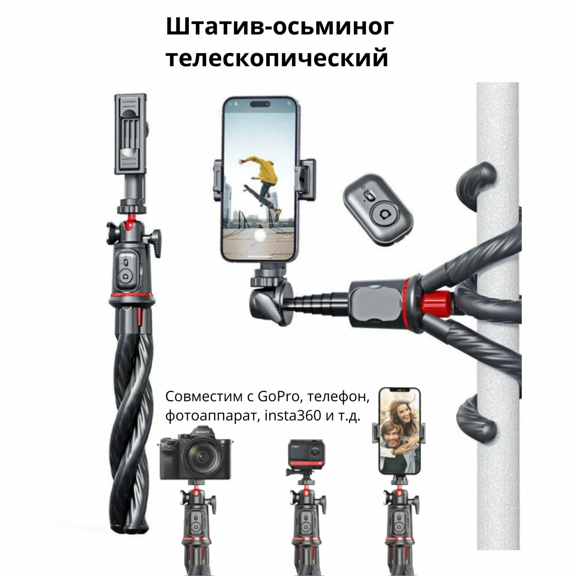 10 цен на Штатив гибкий, штатив-осьминог телескопический octopus + пульт