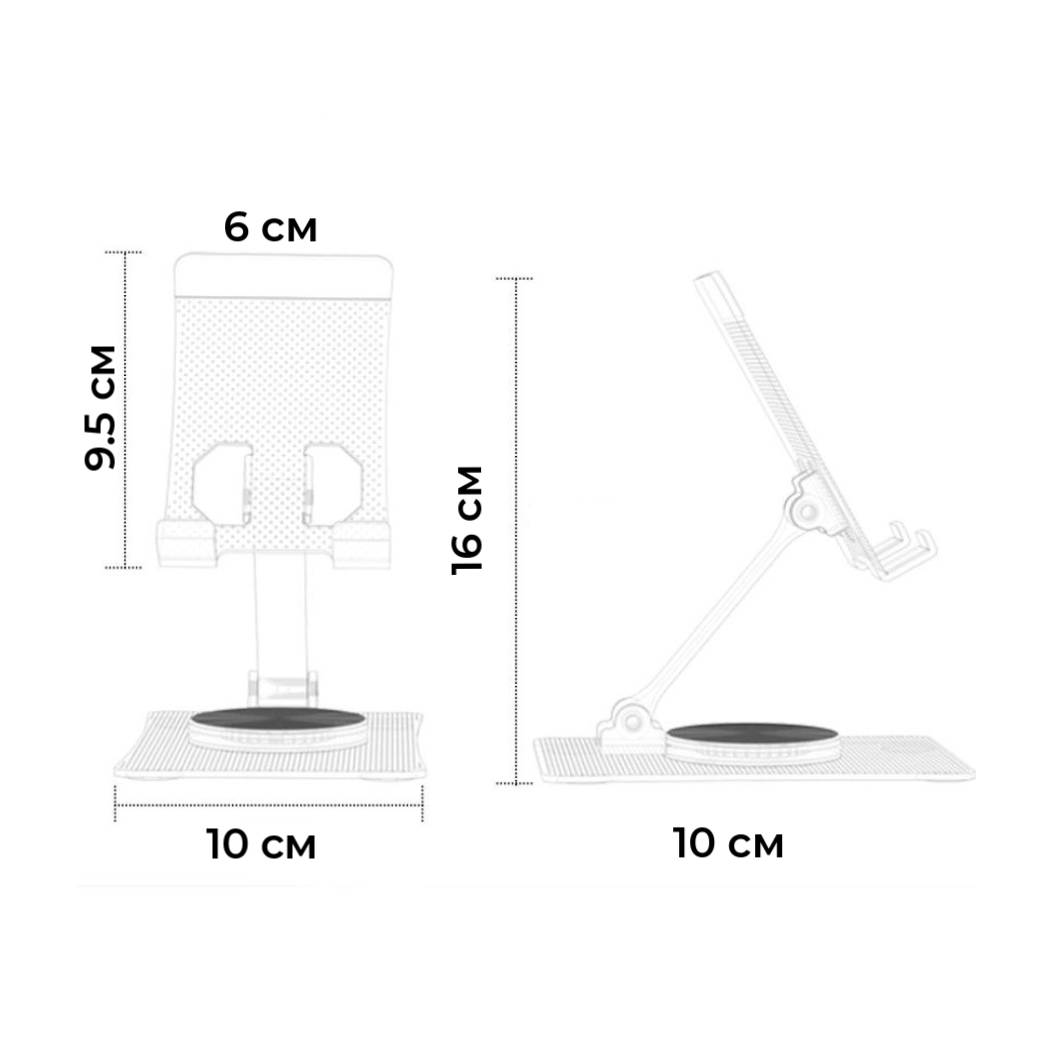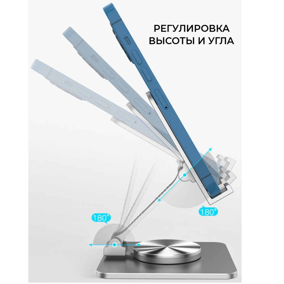 Подставка-держатель для телефона и планшета настольная металлическая складная вращающаяся информация: