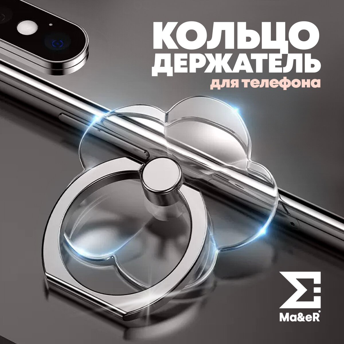 Набор 2 попсокетов для телефона кольца держатели прозрачные 399 ₽