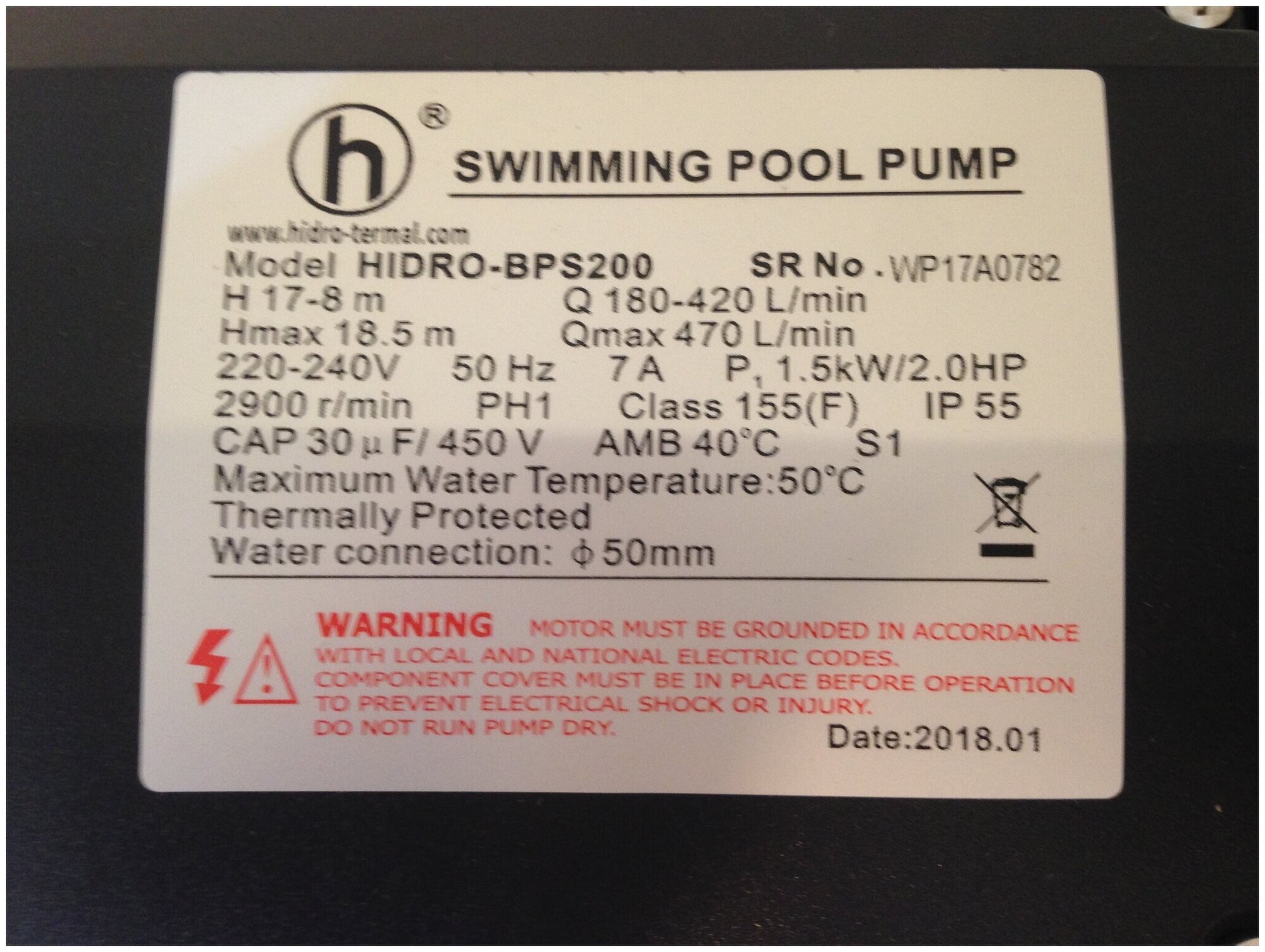 HT Насос BPS200 (25 м3/ч, 220В, 1.5 кВт, 2HP, 50 мм, с предфильтром) информация: