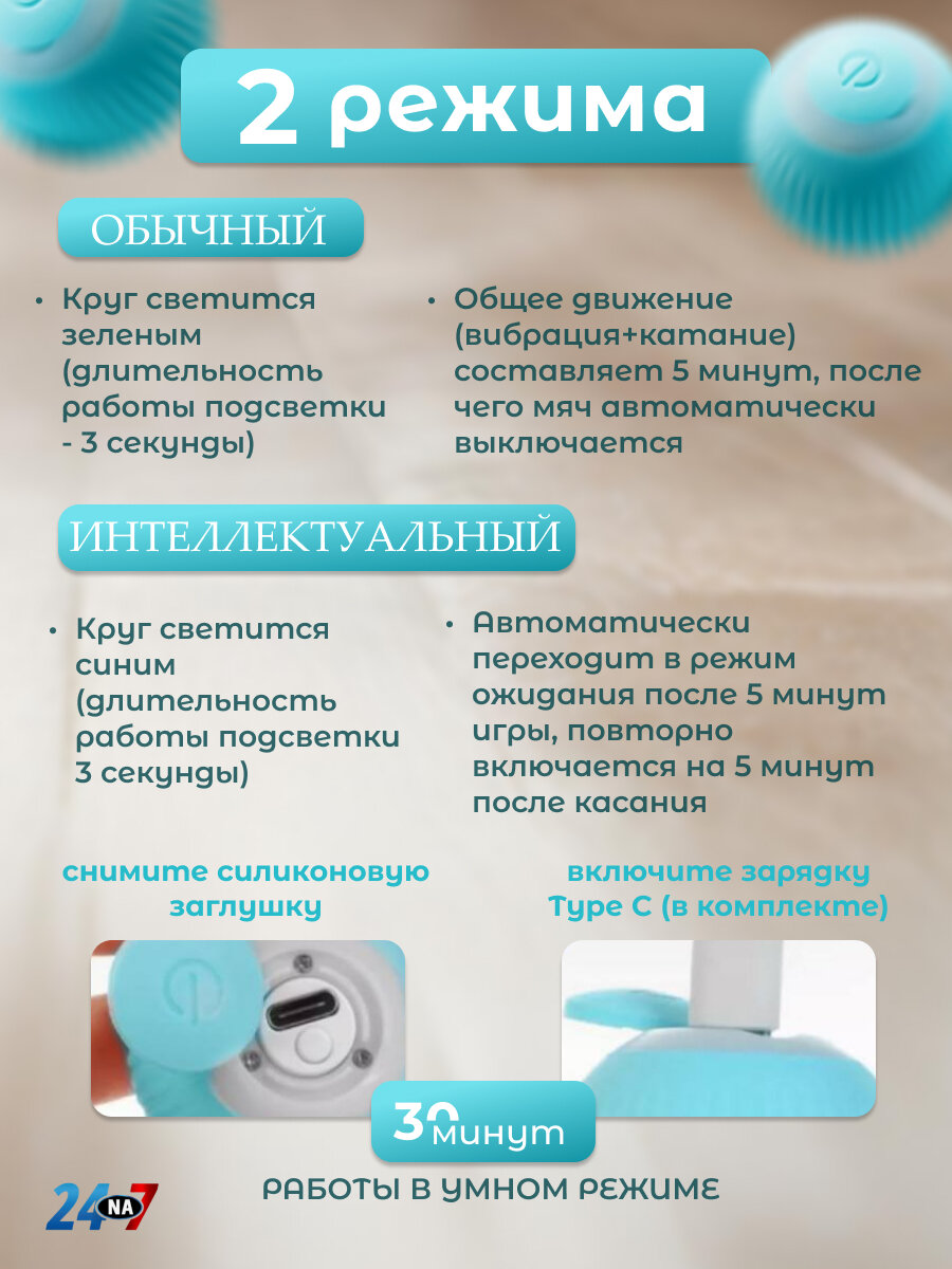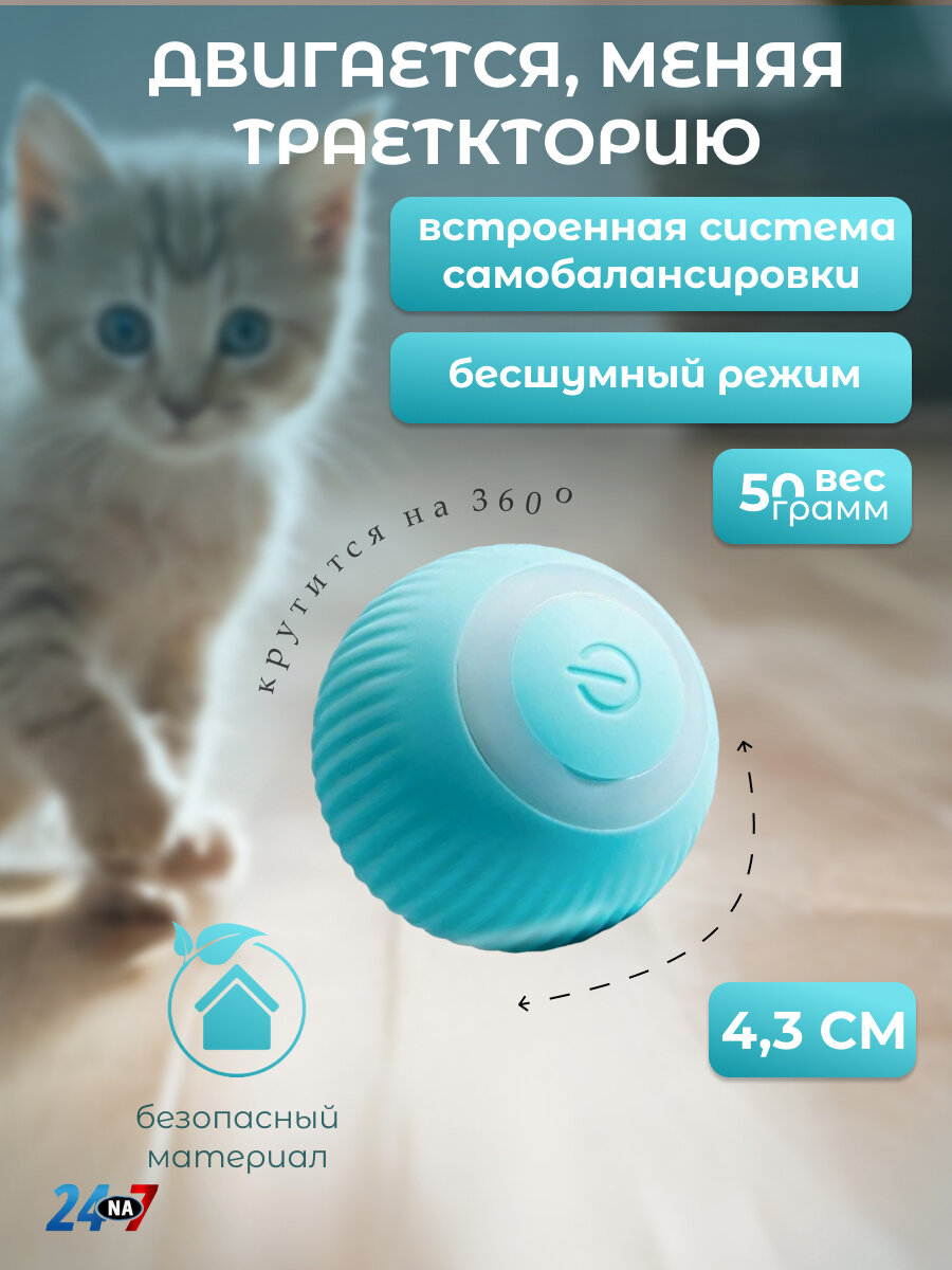 Игрушка для кошек и собак мячик интерактивный голубой цвет информация: