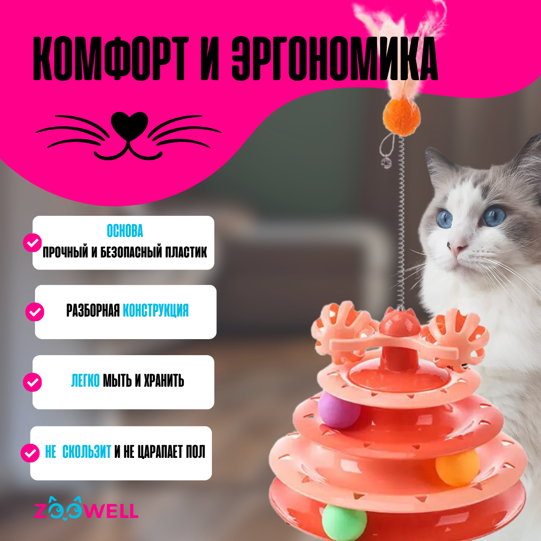 | Дополнительная информация | Комплектация - интерактивный трек, 5 шариков, дразнилка с пером |