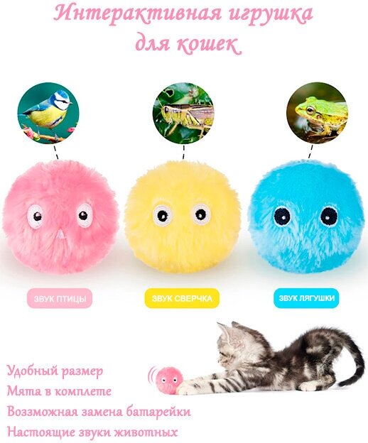 Отзывы на Игрушки для кошек, интерактивный мячик со звуком и кошачьей мяты для котят, розовый