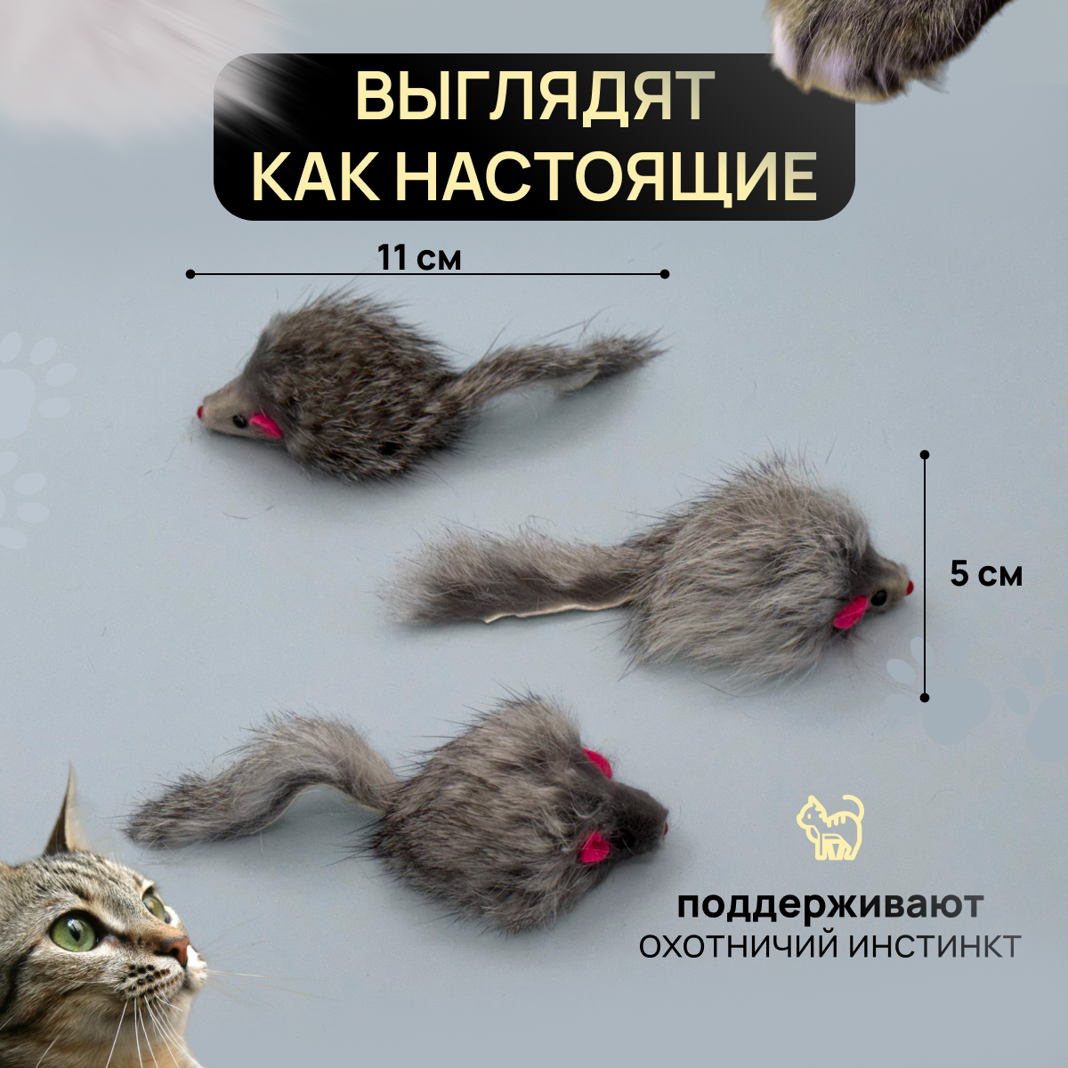 10 цен на Игрушка для кошек - Мышка из натурального меха, цвет серый