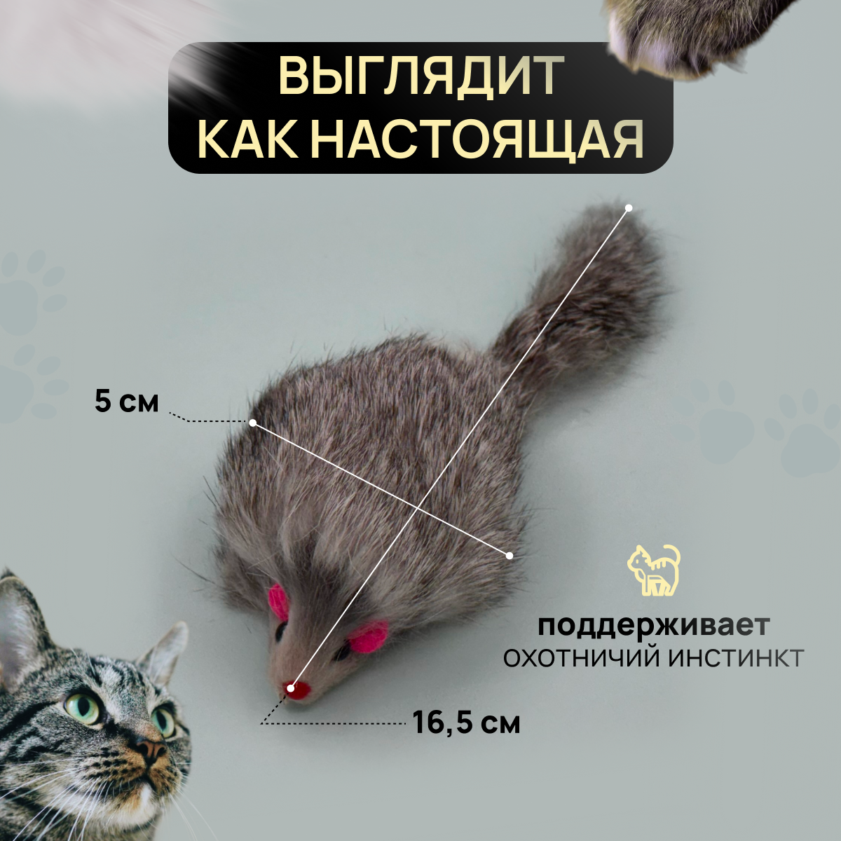 10 цен на Игрушка для кошек - Большая мышка из натурального меха, цвет серый
