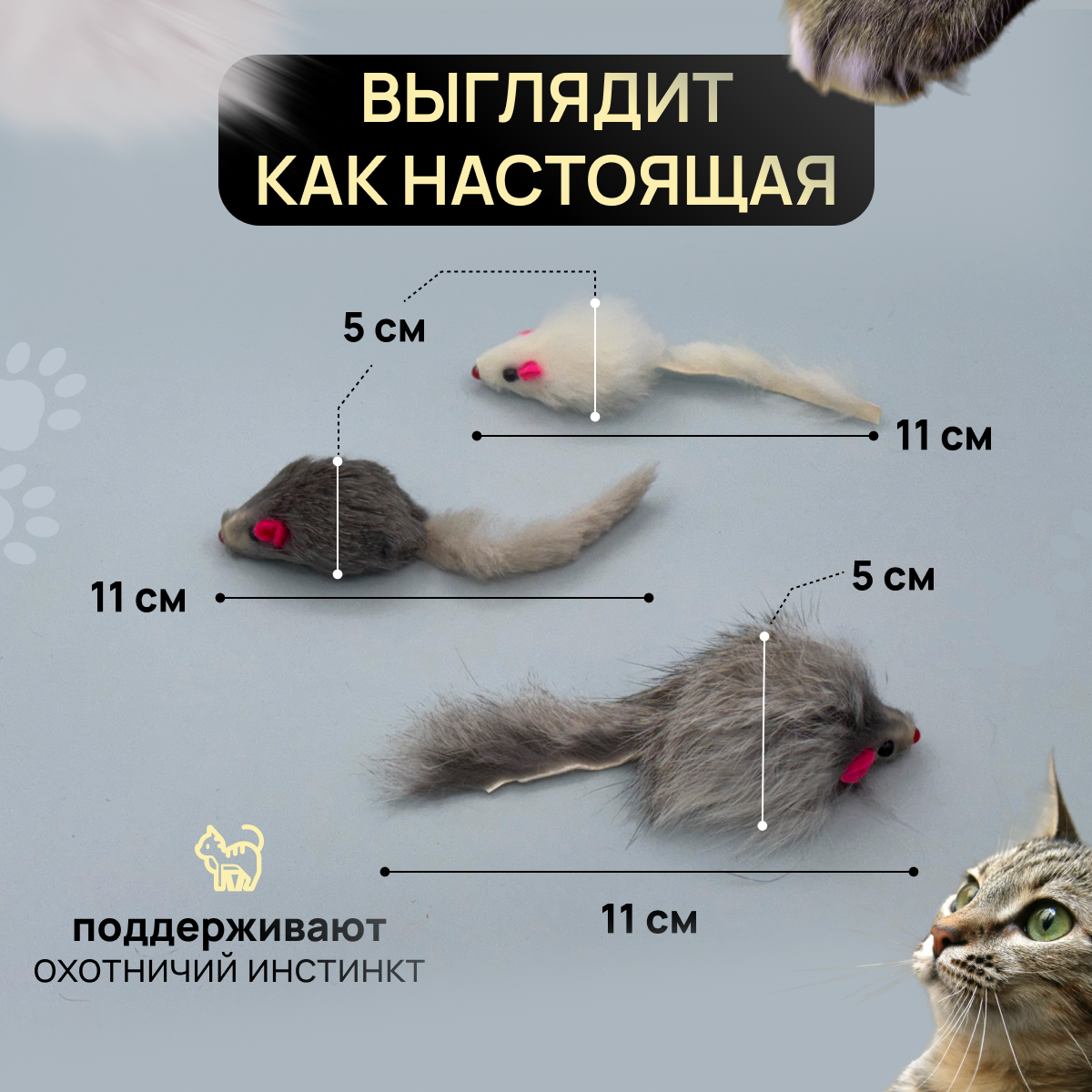 Отзывы на Игрушка для кошек - Мышка из натурального меха, цвет белый, серый