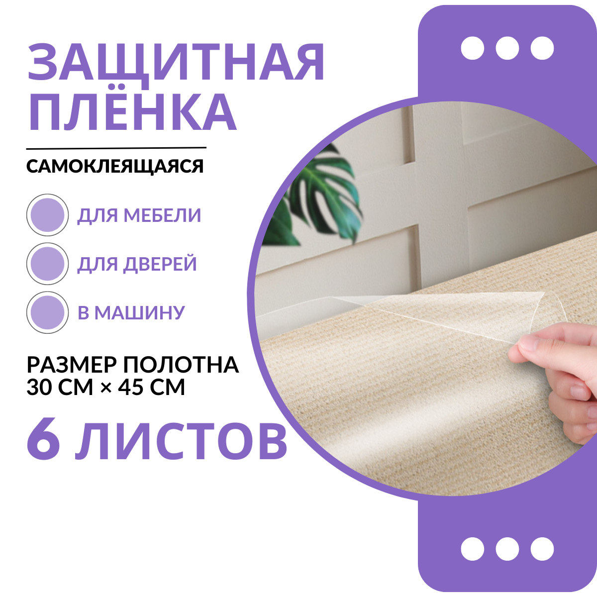 (45*30см, 6 листов) Защитная пленка для мебели от кошек на диван / Самоклеящаяся пленка для мебели когтеточка / Пленка антицарапка информация: