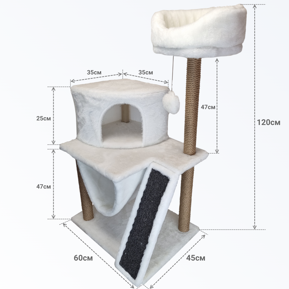 Игровой комплекс "Жмурка" с домиком, гамаком и когтеточкой, 60*45*120см, цвет: Белый информация:
