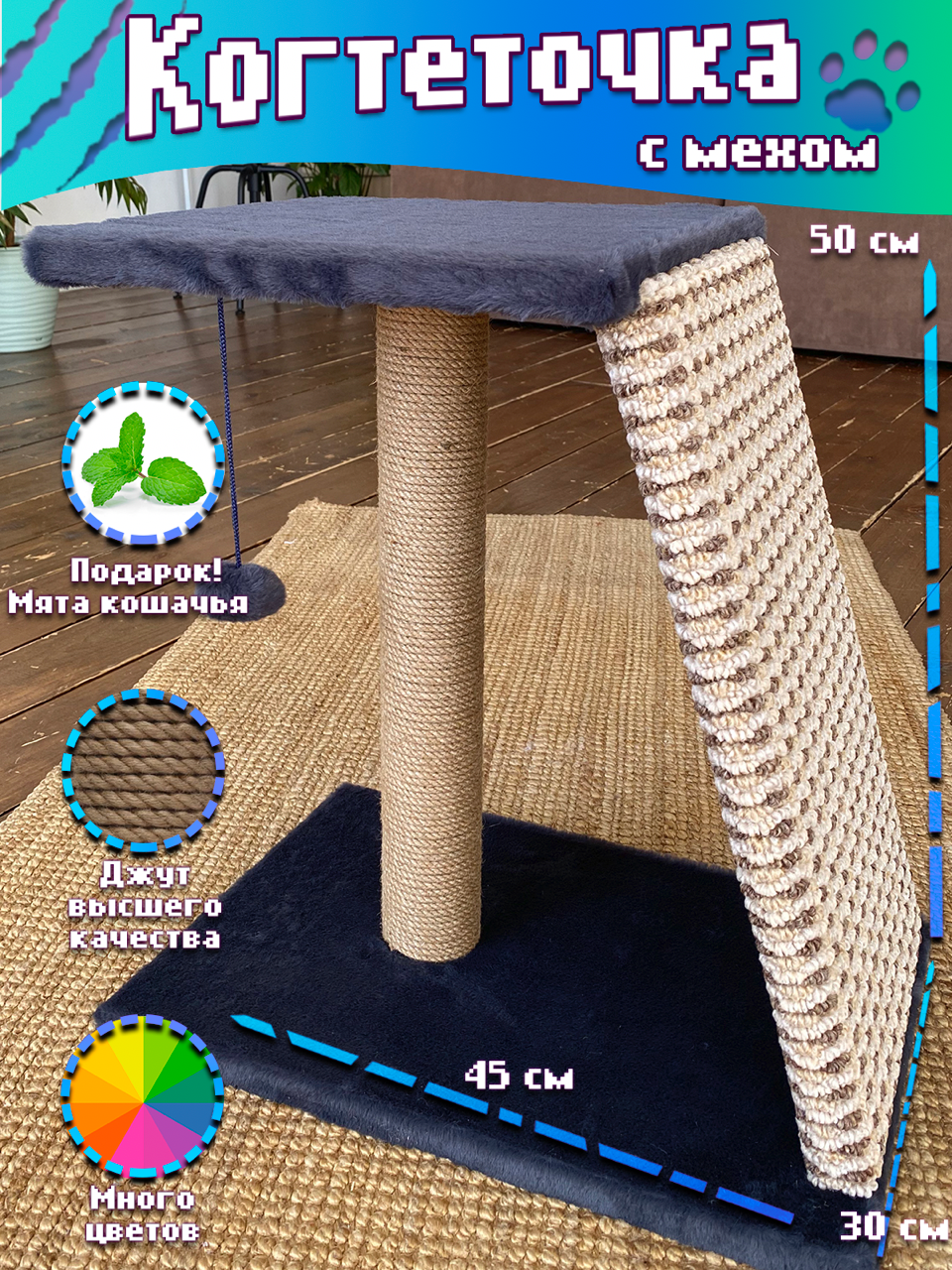 Когтеточка игровой комплекс для кошек Homestuff, с горкой, серый, джут, 30х45х50 см 1 593 ₽