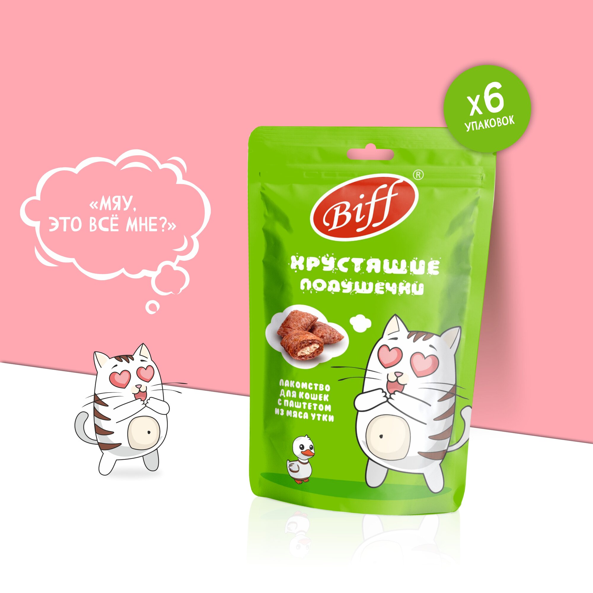 Лакомство для кошек Biff Хрустящие подушечки с паштетом из утки 60 г х 6 упак информация: