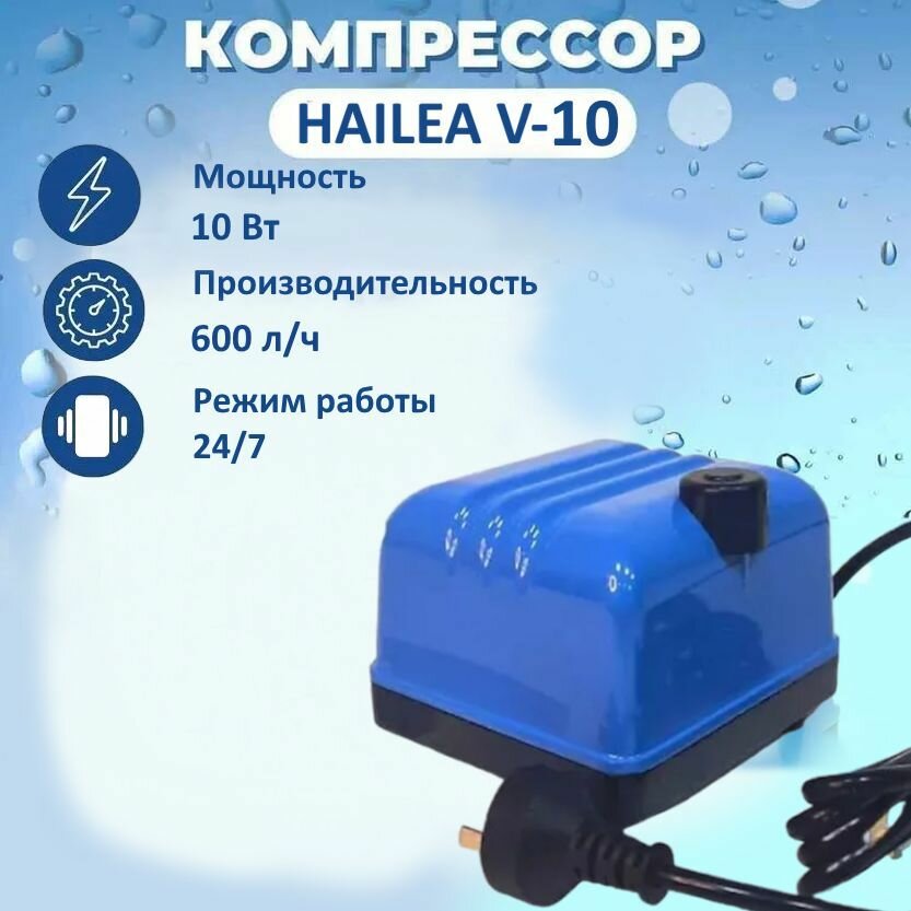 10 цен на Компрессор HAILEA для аквариума "Hailea V-10" Бесшумный. Аэратор для септика, пруда, канализации