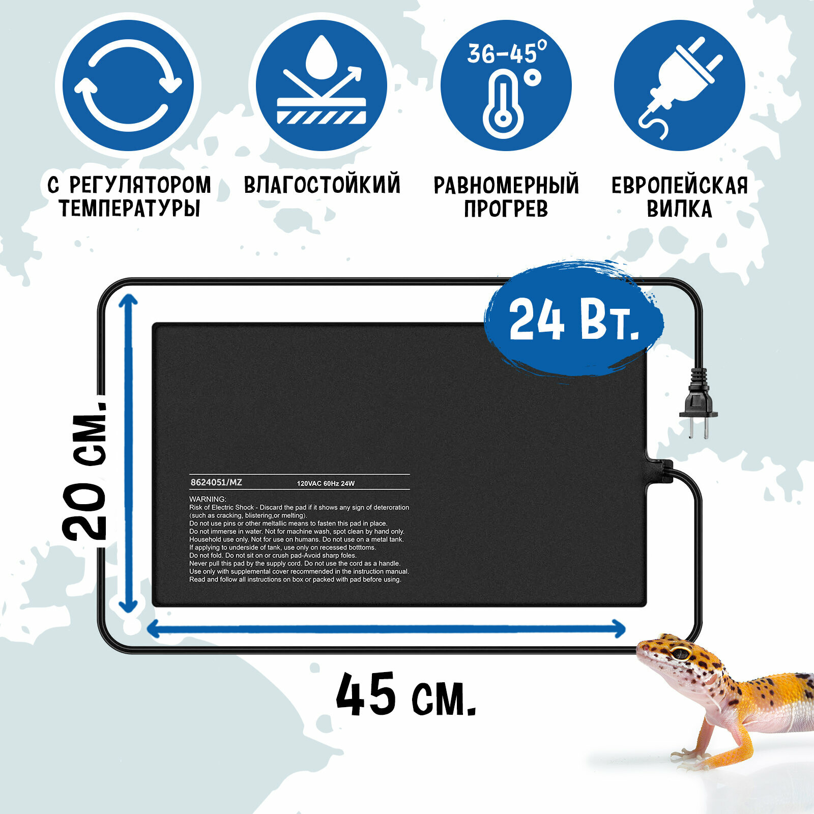 Термоковрик 24Вт влагозащищенный с диммером MCLANZOO, самоклеющийся, чёрный, 20x45см, кабель 1.69м информация: