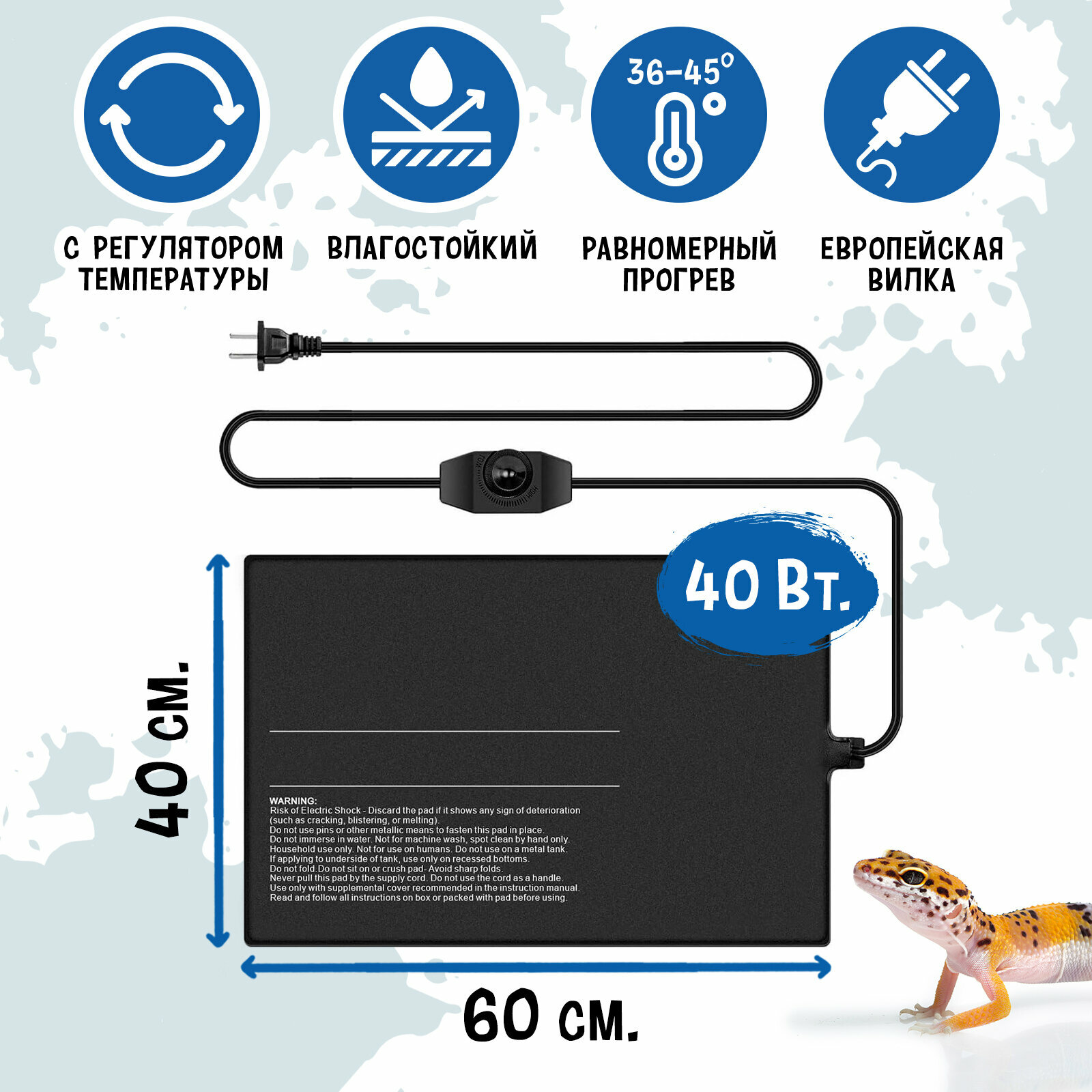 Термоковрик 40Вт влагозащищенный с диммером MCLANZOO, самоклеющийся, чёрный, 40x60см, кабель 1.69м информация: