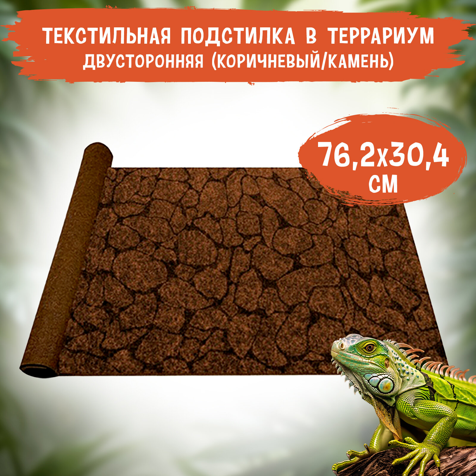 Подстилка в террариум текстильная MCLANZOO, коричневый/камень, двусторонняя, 76,2х30,4см информация: