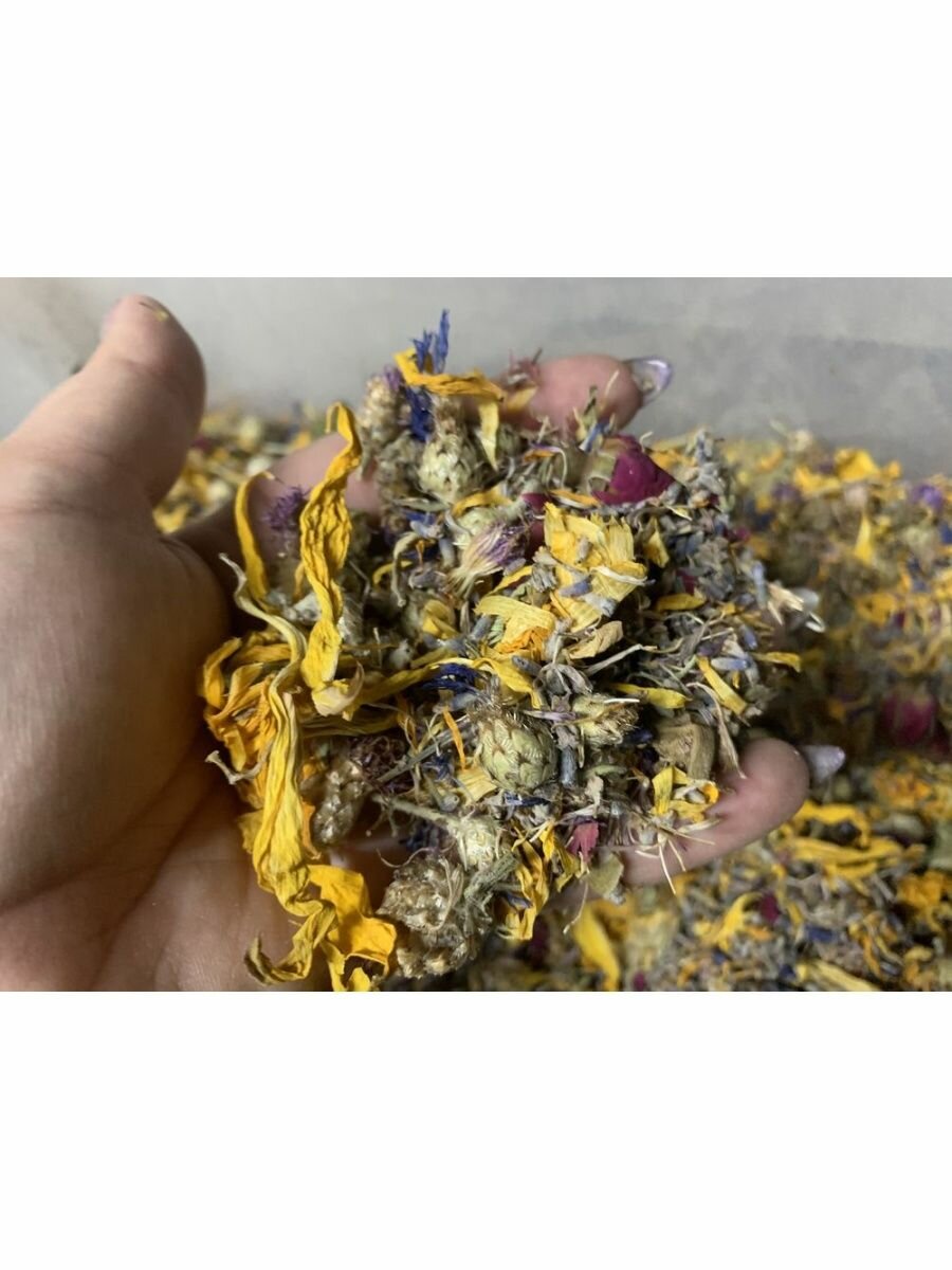 | Состав | бутоны розы,цвет лаванды,лепестки подсолнуха,календула,василек |