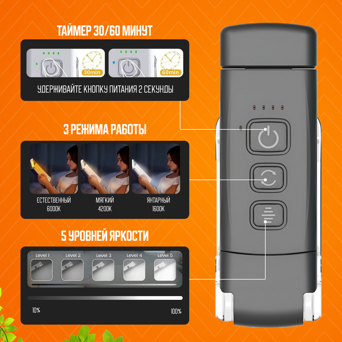Лампа на прищепке, фонарик для чтения информация: