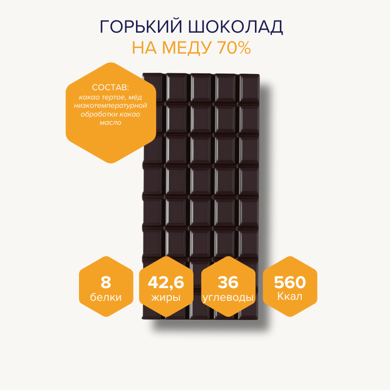 Шоколад горький Без сахара на меду 70% - 10 шт информация: