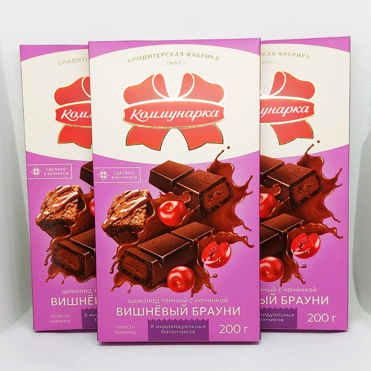 10 цен на Шоколад Коммунарка темный (начинка вкус вишнёвый брауни), 3 шт.