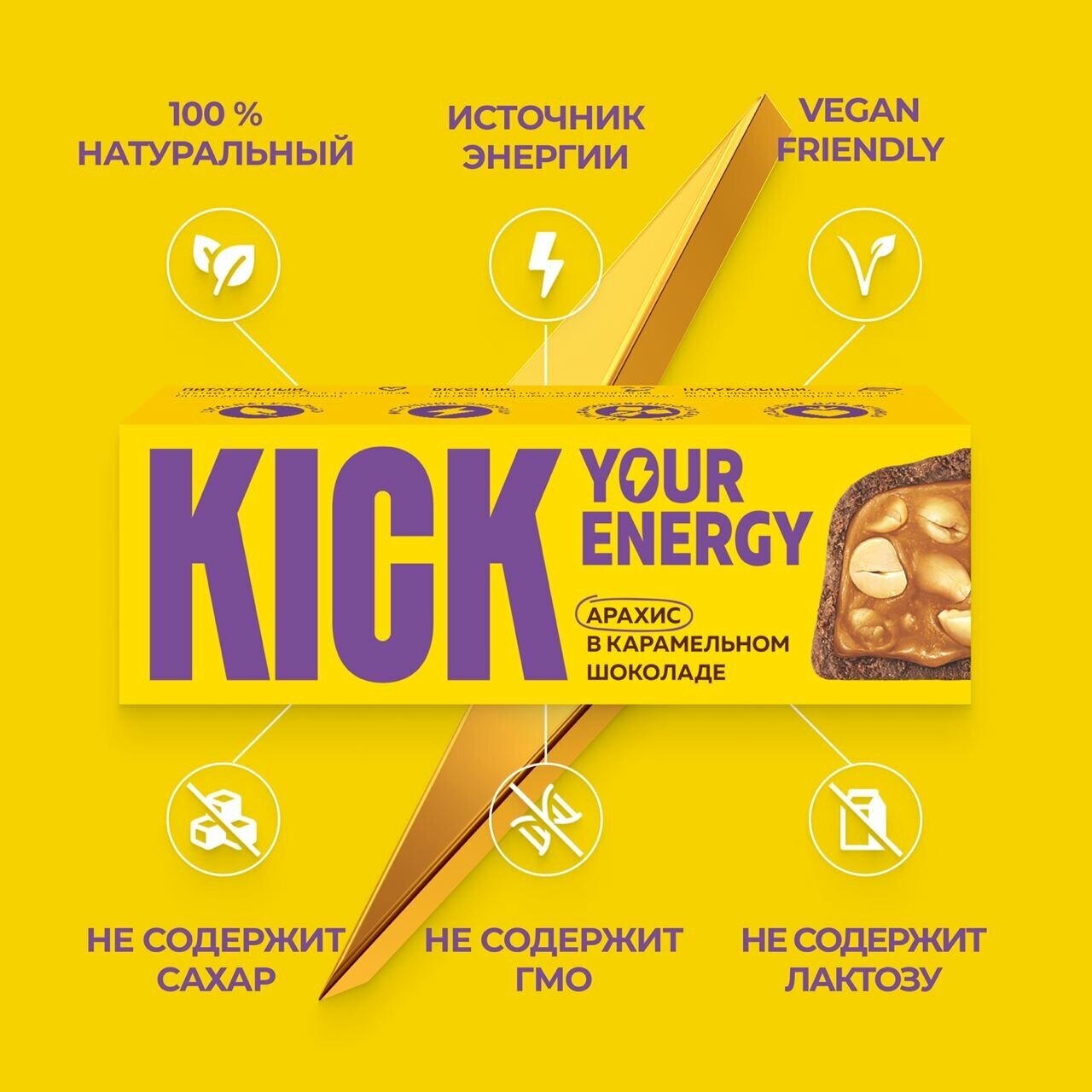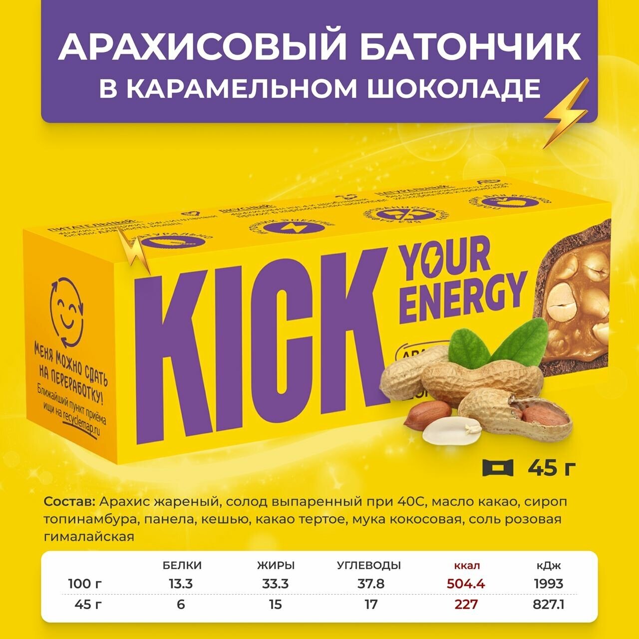 10 цен на Шоколадные батончики без сахара, KICK YOUR ENERGY, ассорти 26, 10шт по 45г.