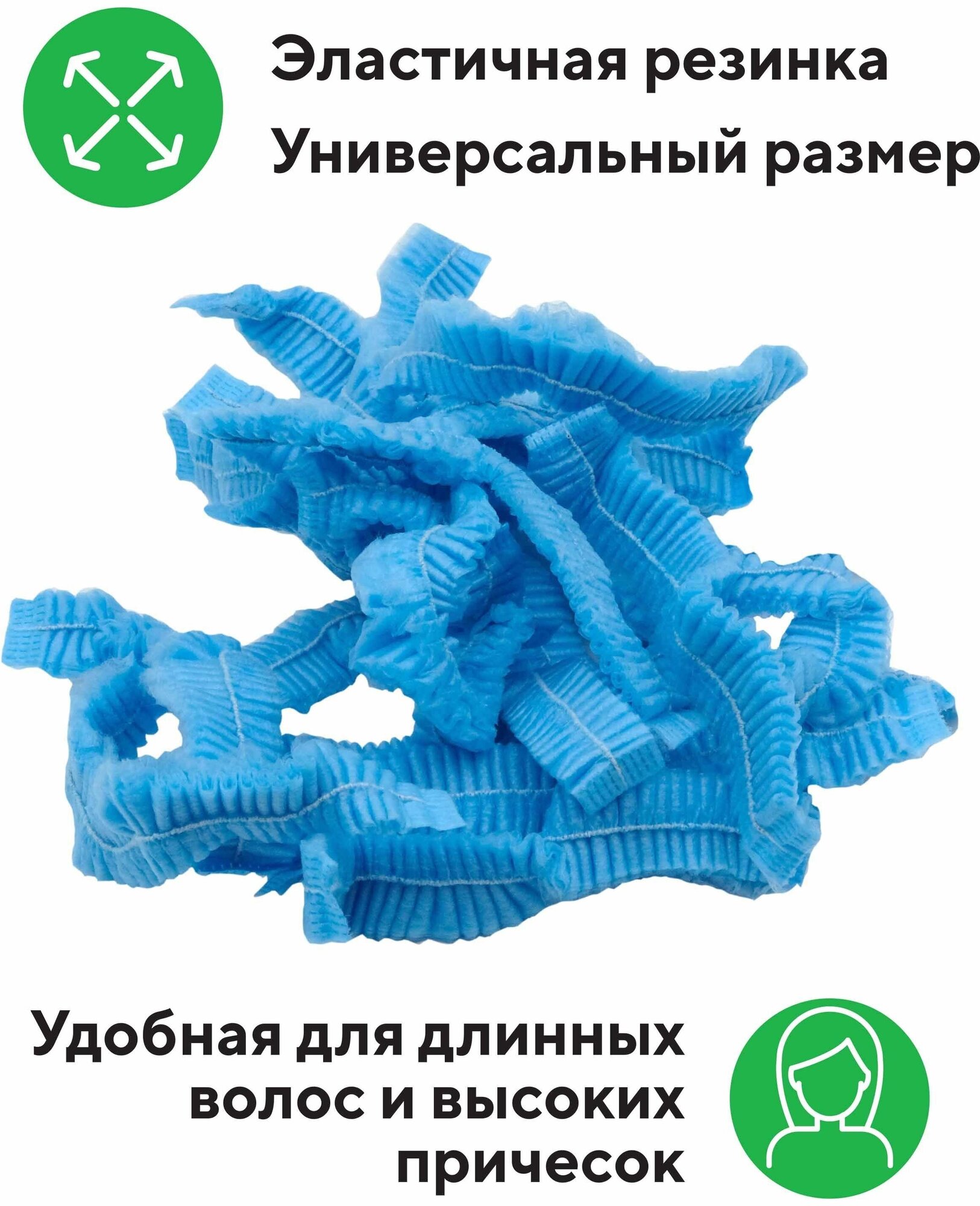 10 цен на Шапочка Шарлотта одноразовая медицинская косметическая голубая шелк-флис, 100 штук