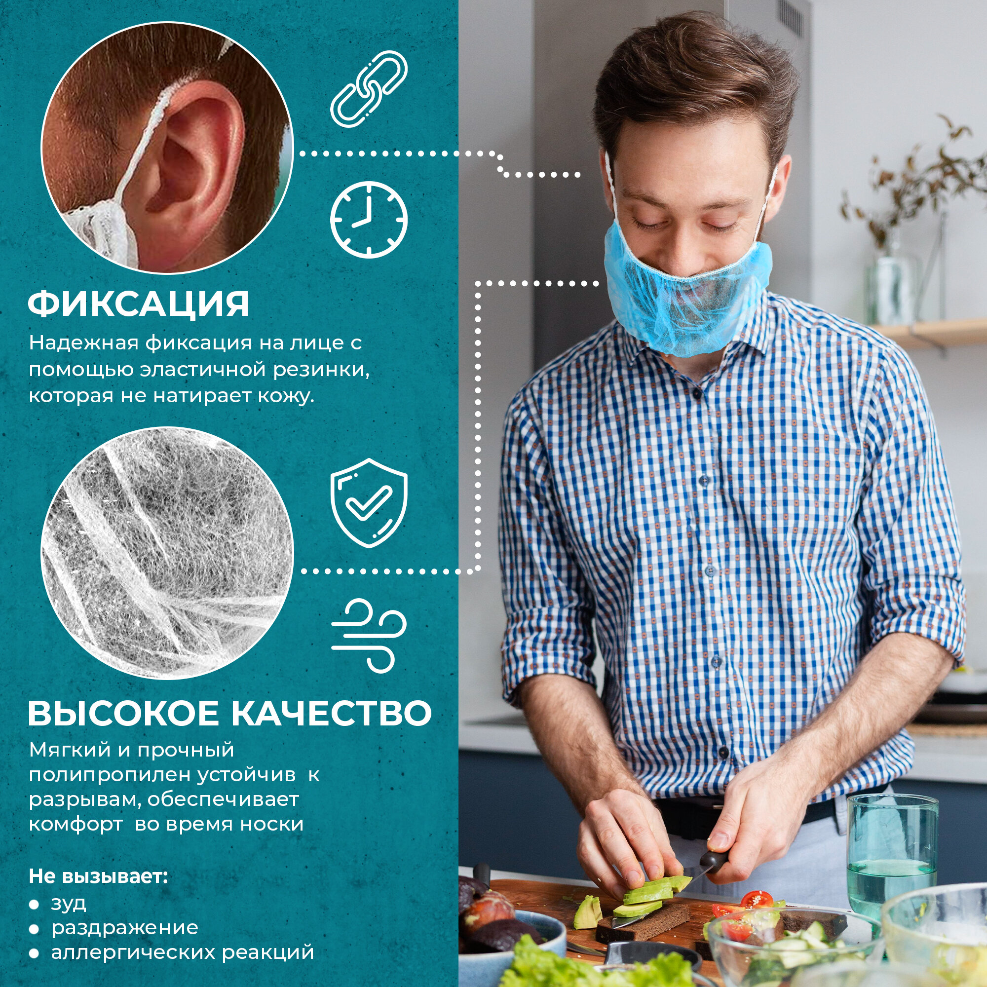 Набородник одноразовый полипропилен белый ABC Pack & Supply, 100шт. Защитная маска для бороды, сетка на бороду медицинская, для повара, в общепит информация: