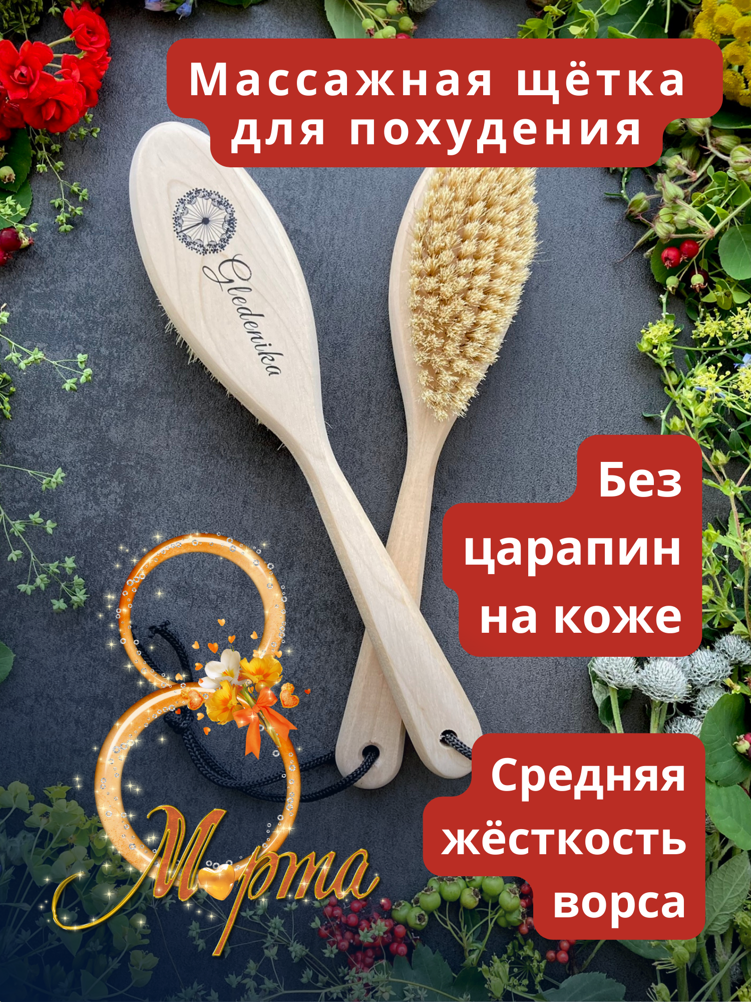 Отзывы на Gledenika /Антицеллюлитная щетка на ручке для сухого массажа тела с натуральной щетиной кабана/Средняя жесткость