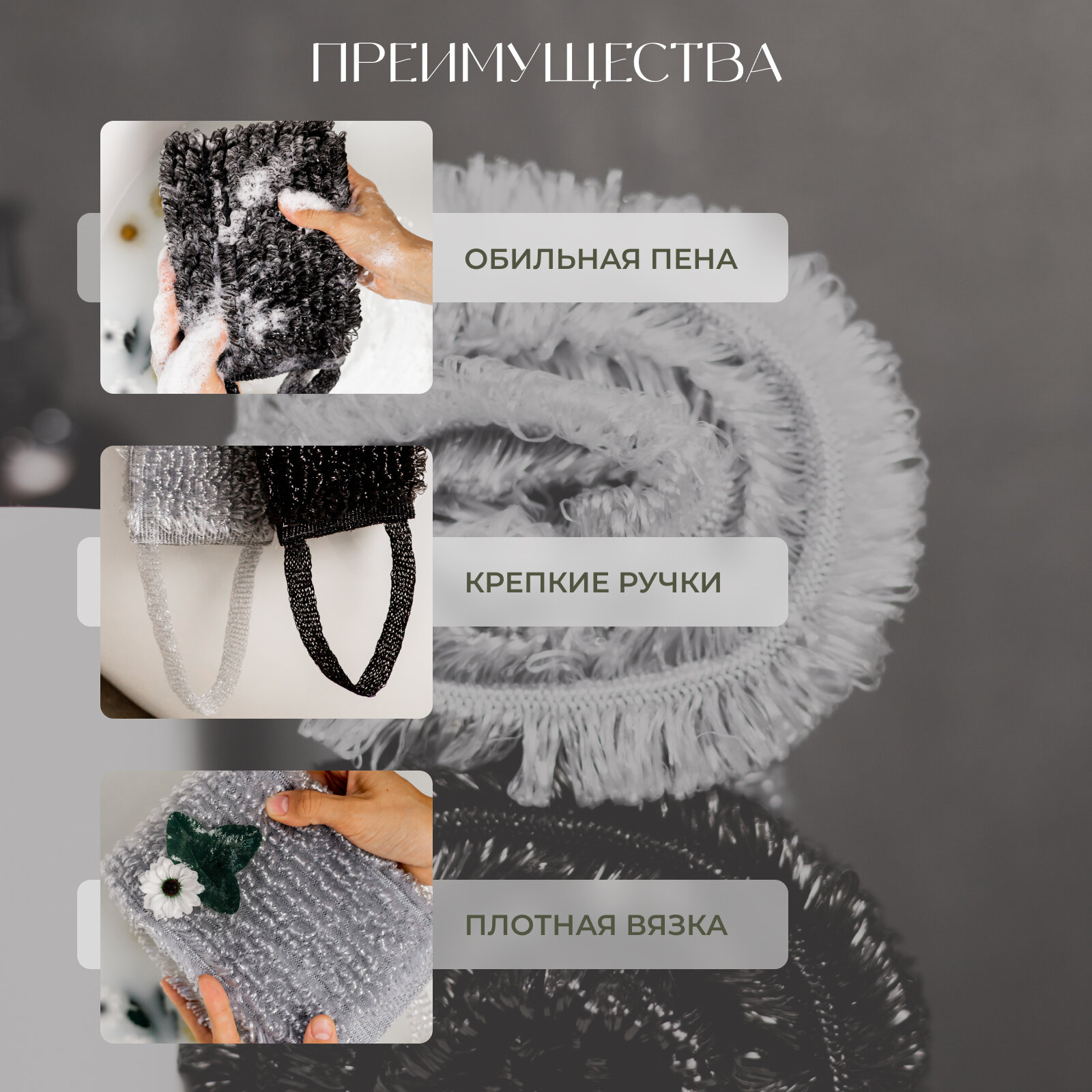Мочалка-варежка массажная 21х11.5 см. бамбуковый уголь. китайская крапива. цвет серый 5445642