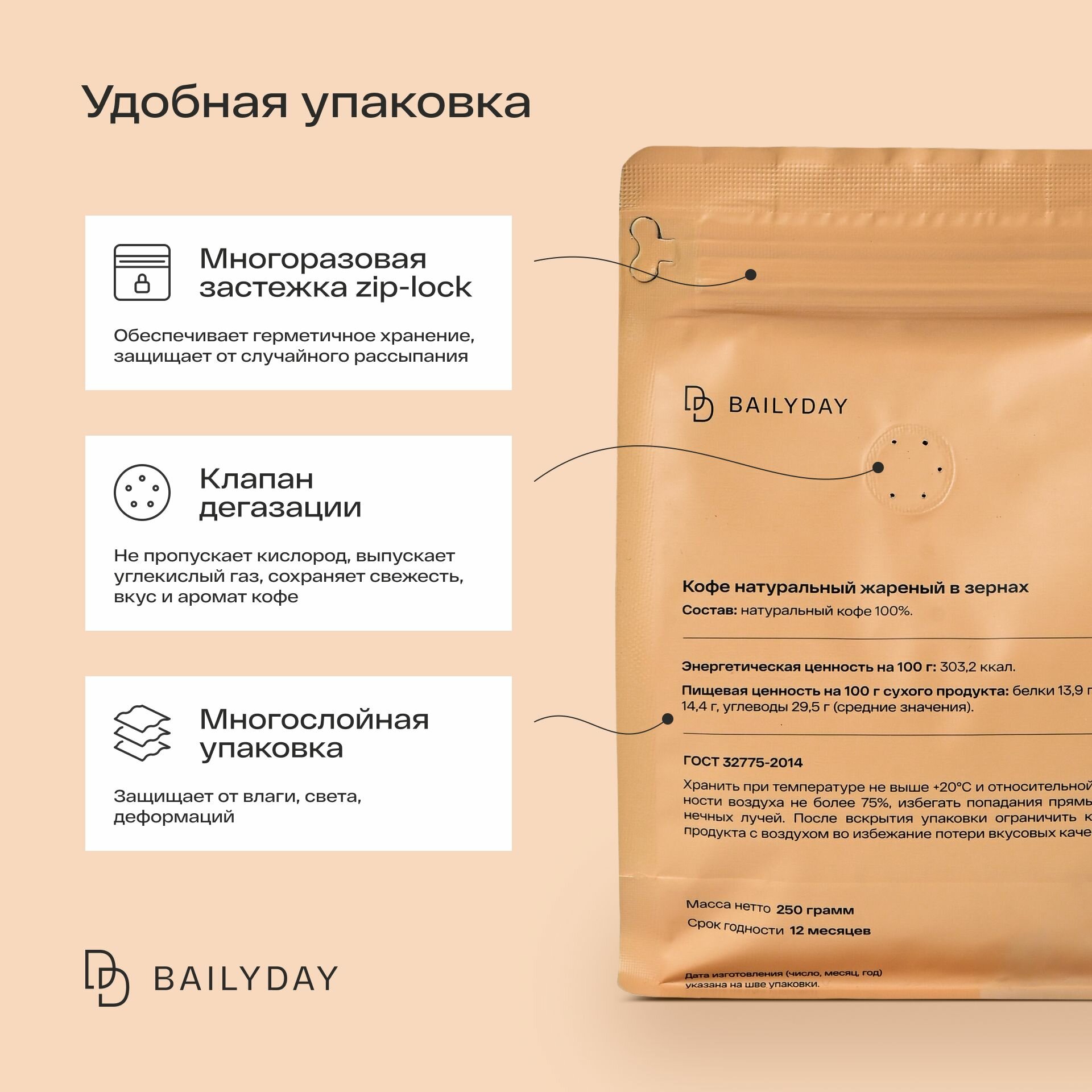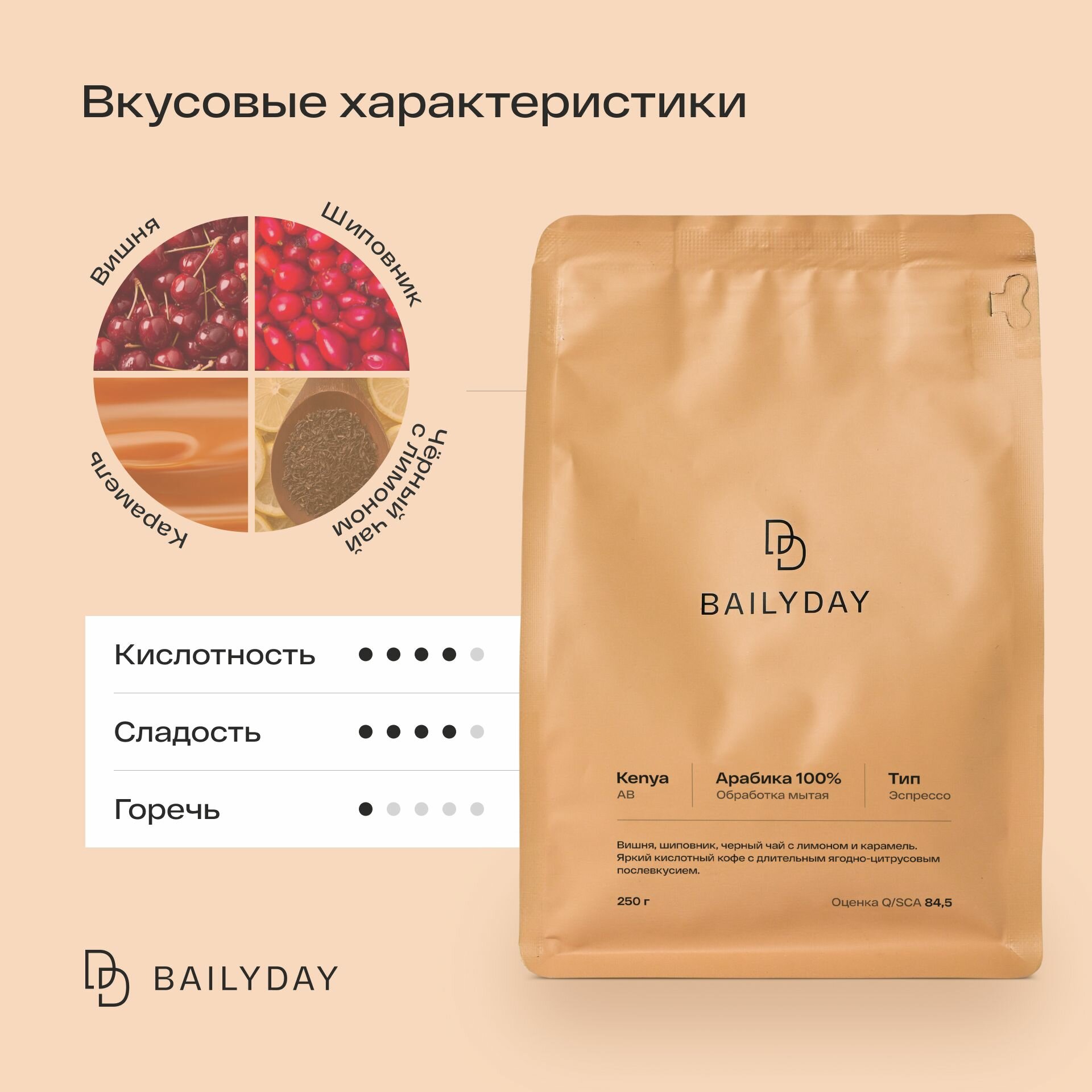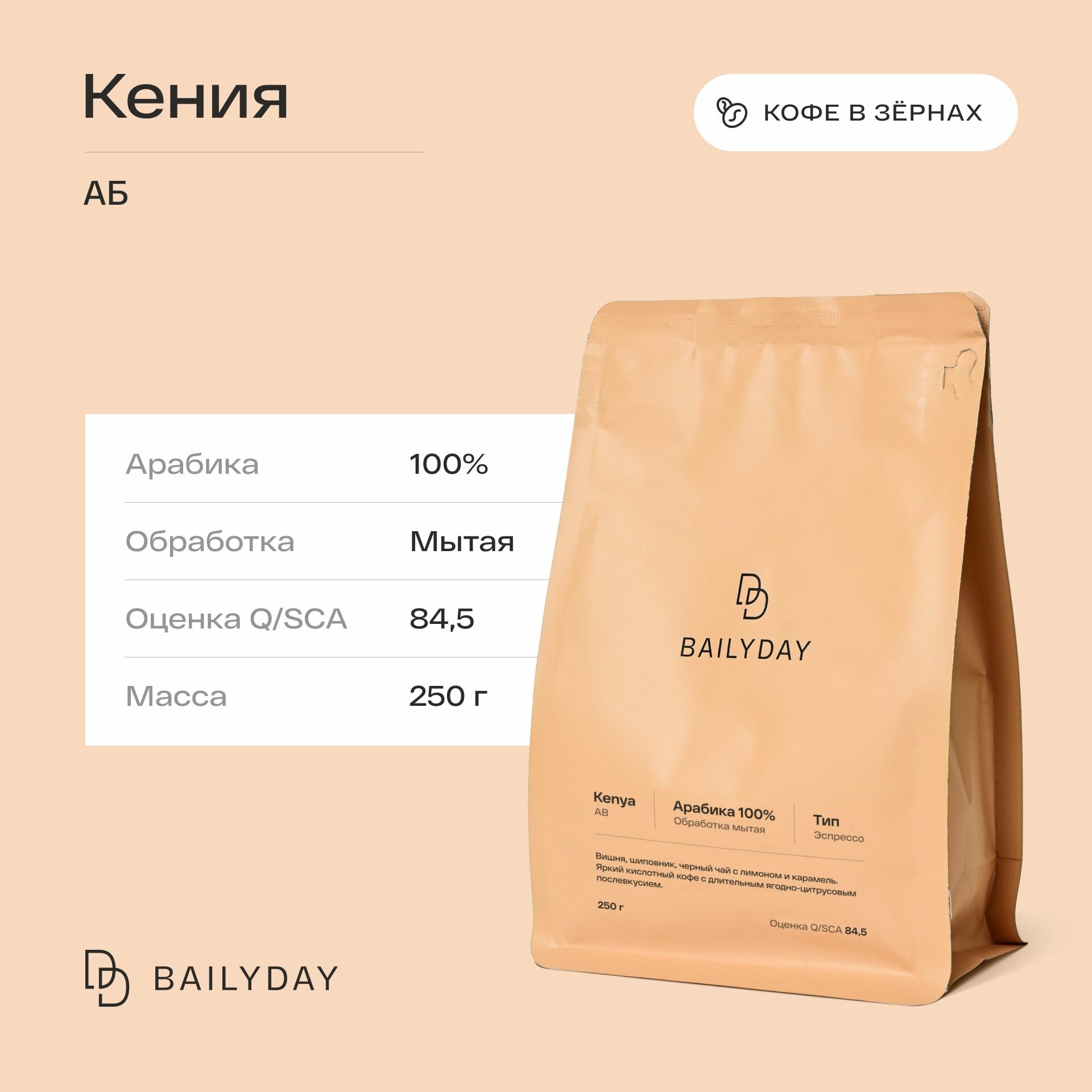 Кофе в зернах Кения АБ Bailyday, 100% арабика, обжарка под эспрессо, 250 г информация: