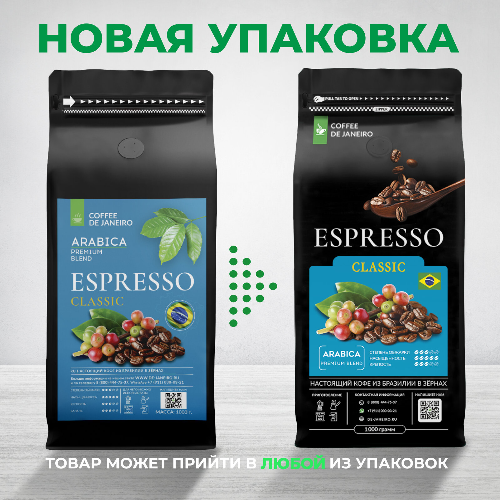 Бразильский кофе в зёрнах 1кг DE JANEIRO (ДЕ жанейро) Кофе в зёрнах 1 кг ESPRESSO PERU 100% Арабика, в упаковке Zip-Lock / Зерновой кофе 1 кг