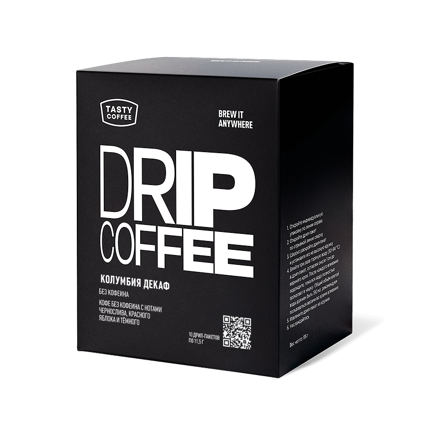 Кофе в дрип-пакетах Колумбия Декаф Tasty Coffee, 10 шт информация: