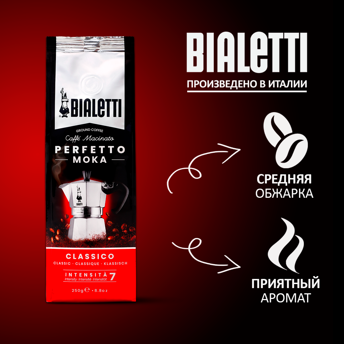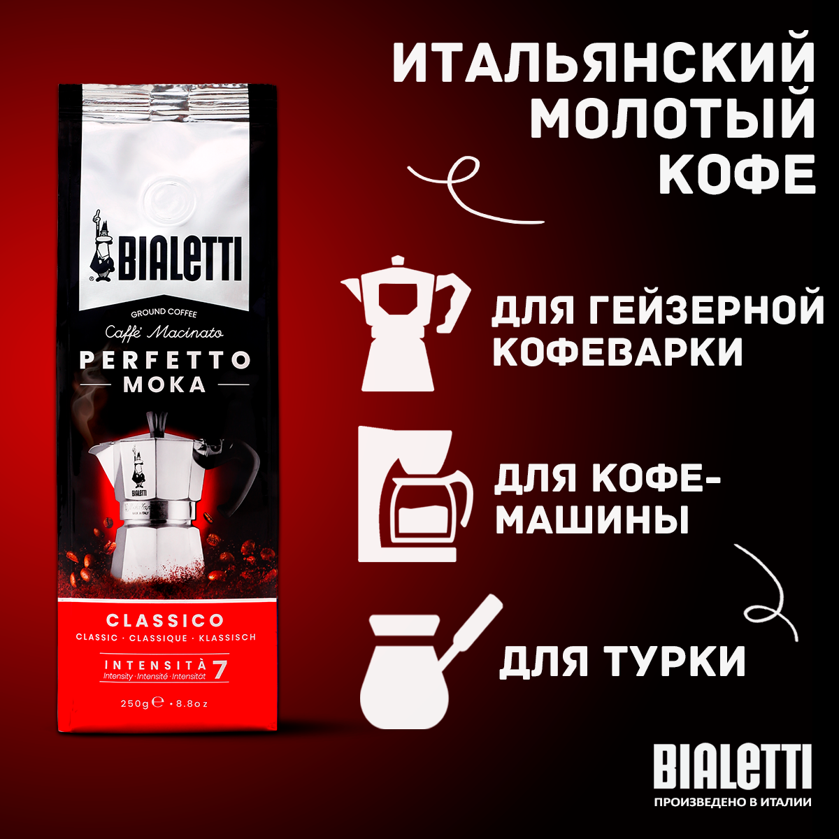 Кофе молотый Bialetti Perfetto Moka Classico, классический, вакуумная упаковка 250 г информация:
