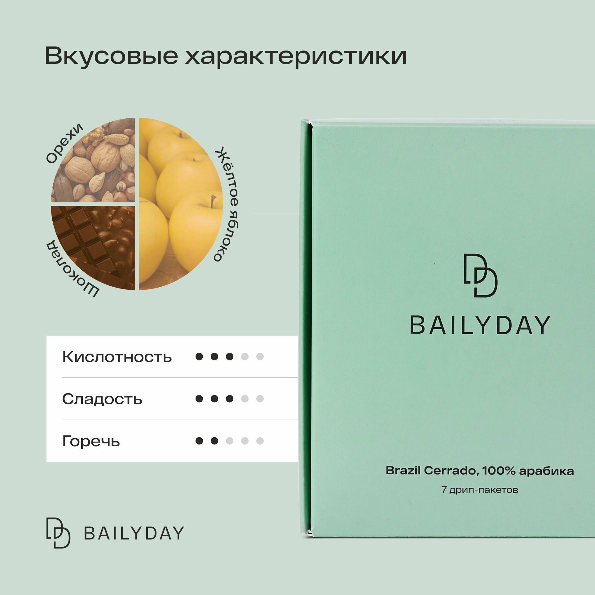Дрип кофе Bailyday Бразилия Серрадо (Молотый кофе в дрип-пакетах) 7 шт. по 11 г информация: