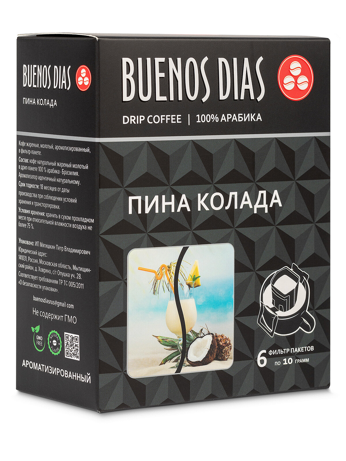 10 цен на Дрип кофе Buenos Dias Пина-Колада 6шт*10гр Кофе молотый ароматизированный в дрип пакетах