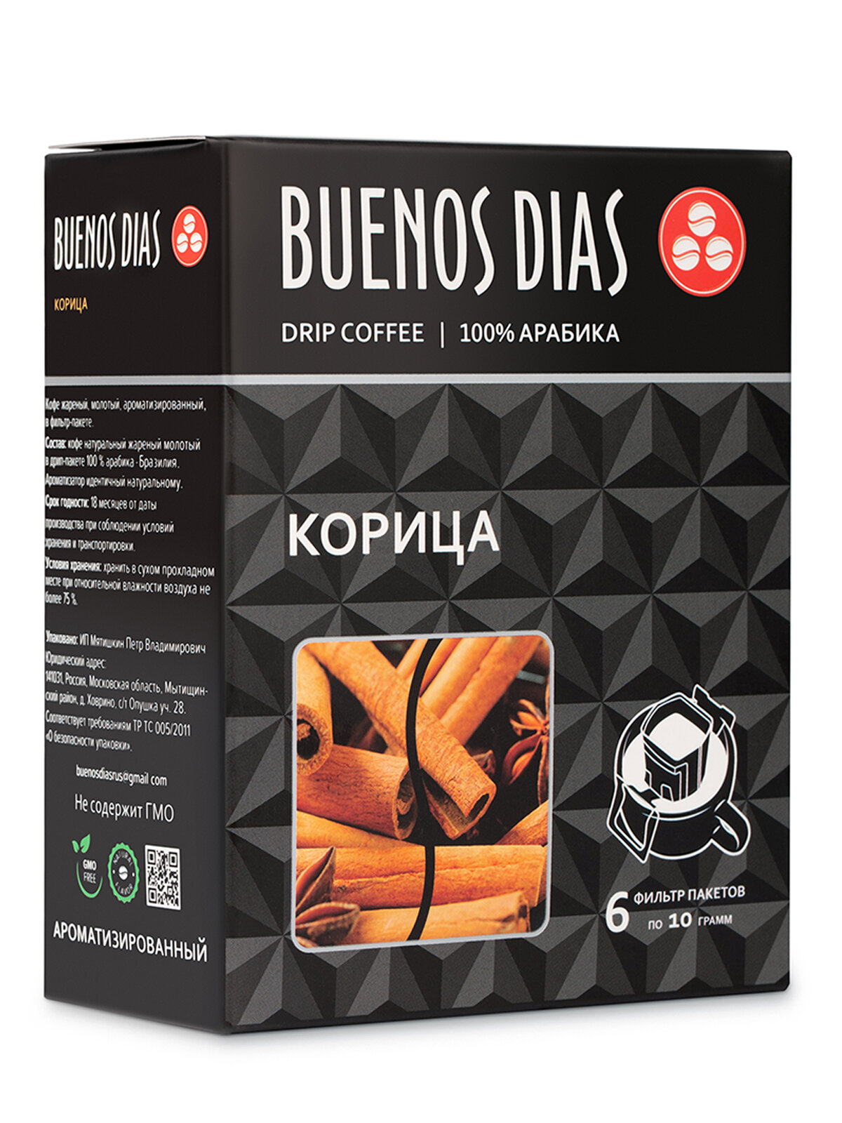 10 цен на Дрип кофе Buenos Dias Корица 6шт*10гр Кофе молотый ароматизированный в дрип пакетах