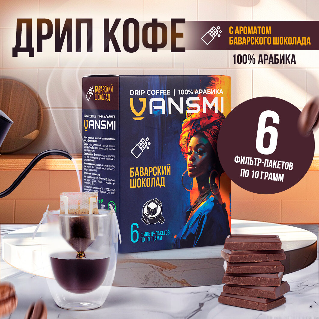 Дрип кофе VANSMI Баварский шоколад 6шт*10гр Кофе молотый ароматизированный в дрип пакетах