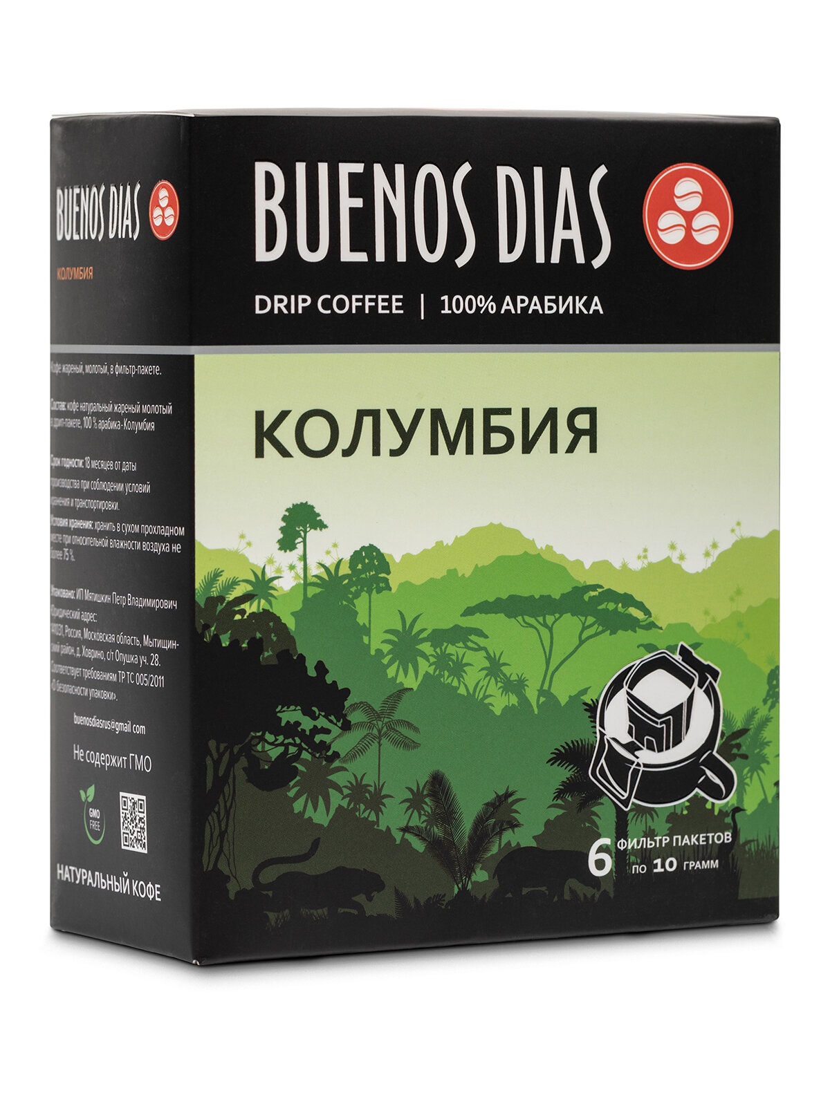 Дрип кофе Buenos Dias Колумбия 6шт*10гр Кофе молотый в дрип пакетах информация: