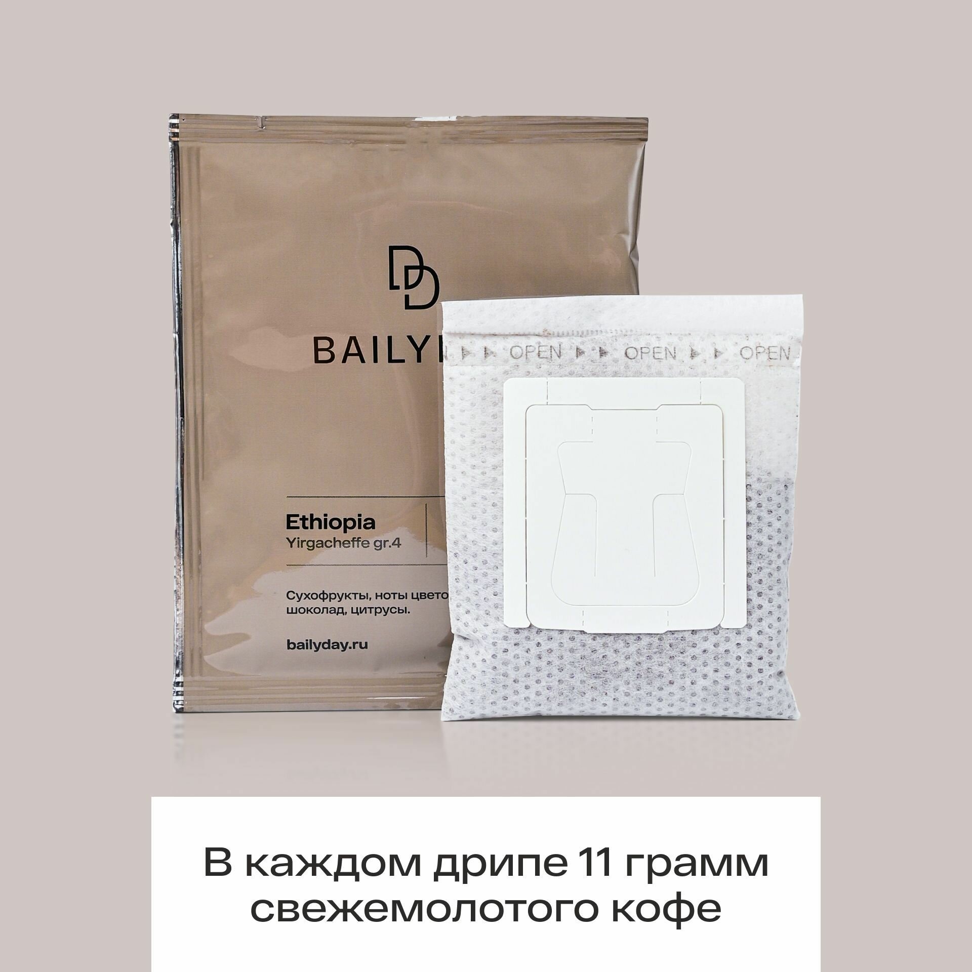 Дрип кофе Bailyday Эфиопия Иргачефф (Молотый кофе в дрип-пакетах) 7 шт. по 11 г информация: