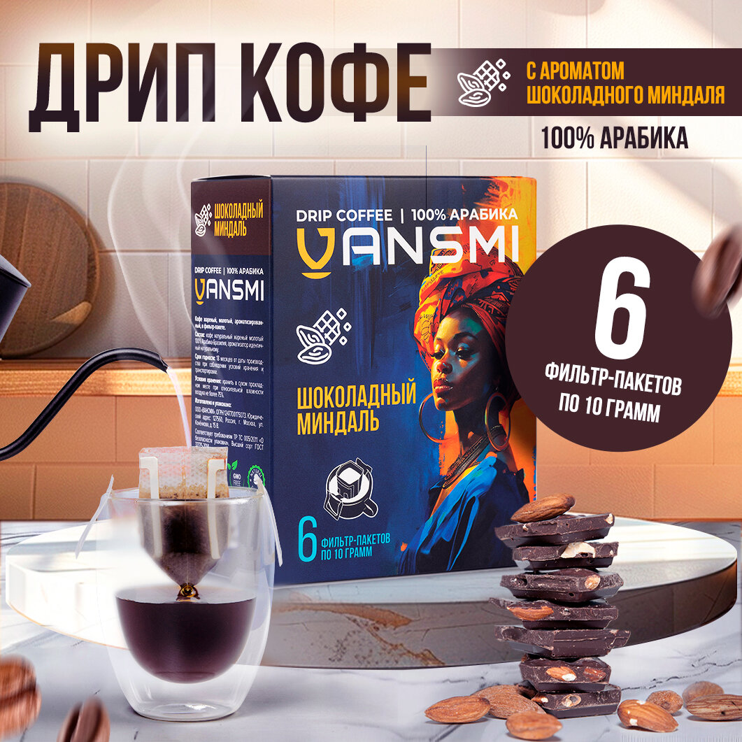 10 цен на Дрип кофе VANSMI Шоколадный миндаль 6шт*10гр Кофе молотый ароматизированный в дрип пакетах