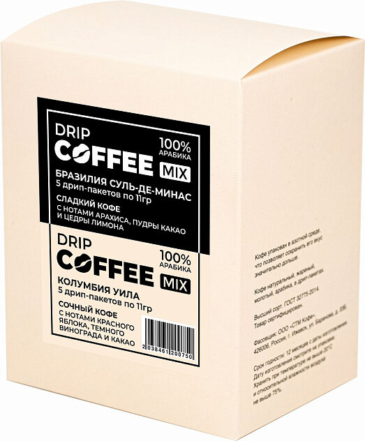 10 цен на Кофе молотый в дрип-пакетах "Колумбия Уила" 5 шт + "Бразилия Суль-де-Минас" 5шт