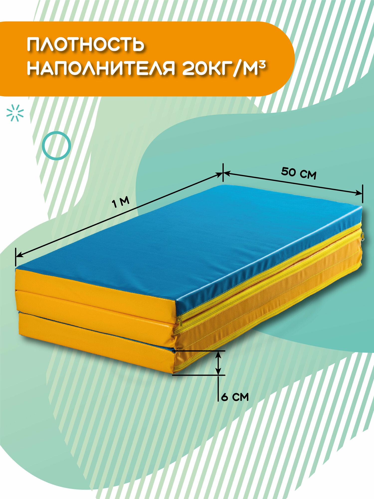 Мат, 64х120х7 см, 1 сложение, цвет синий/жёлтый