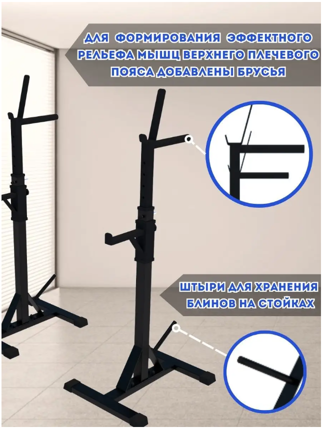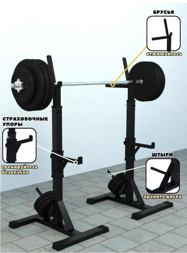 10 цен на Стойки под штангу со страховкой и штырями для дисков (черные)