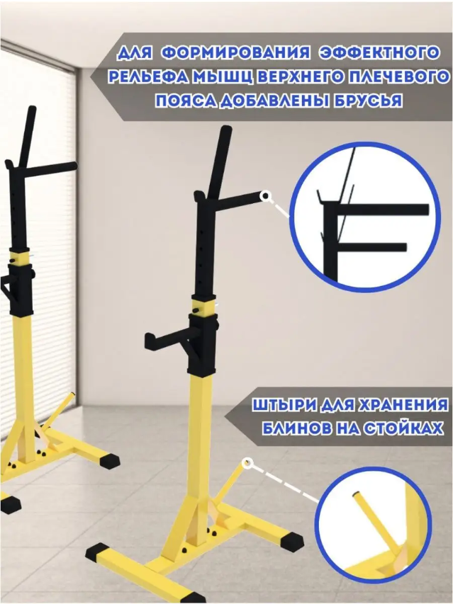 10 цен на Стойки под штангу со страховкой и штырями для дисков (желтые)