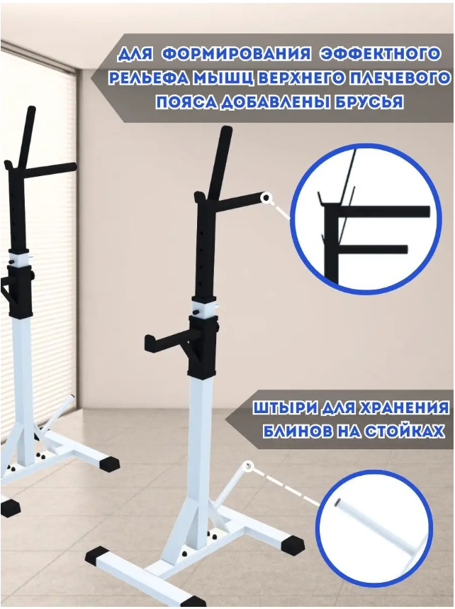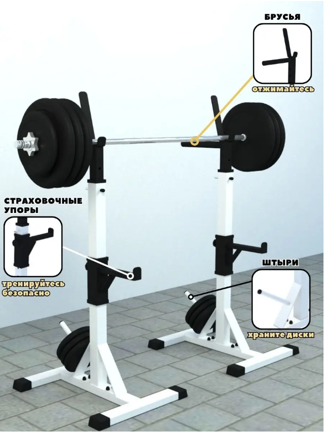 10 цен на Стойки под штангу со страховкой и штырями для дисков (белые)