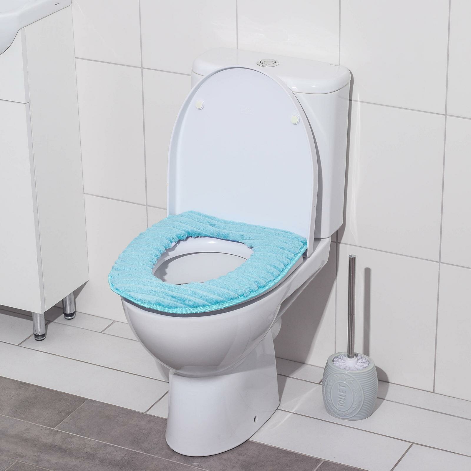 Чехол на сиденье для унитаза на липучках Плюшевый (Голубой) информация: