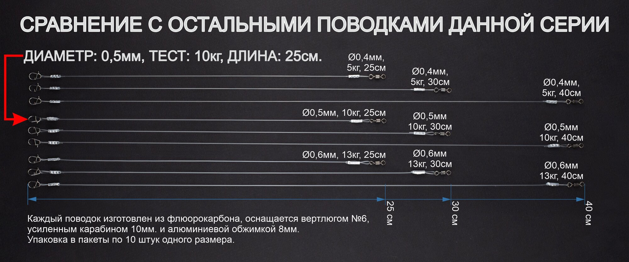Поводки рыболовные, флюорокарбон, оснащённые, усиленные. 25 см, 0,5 мм. 10 штук информация: