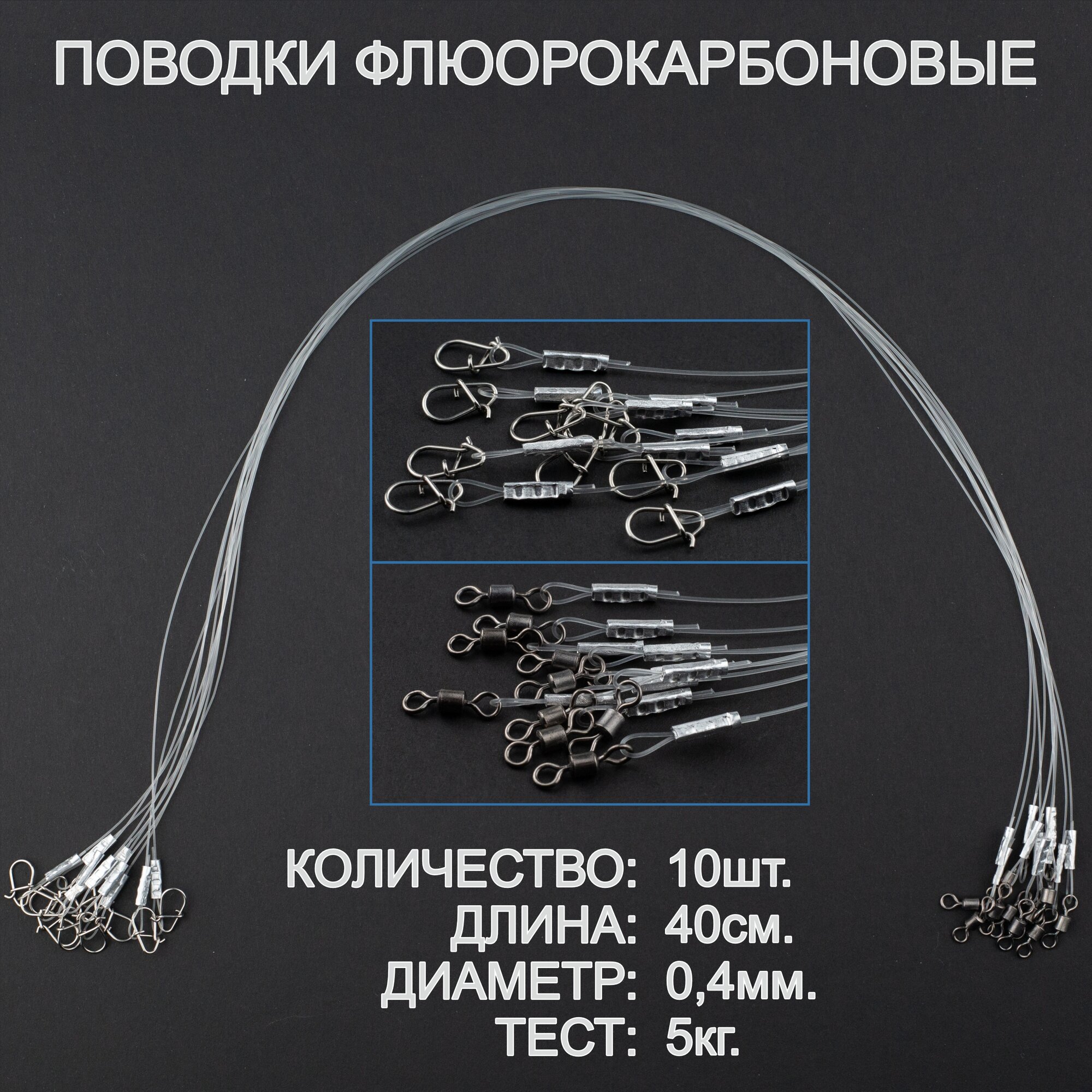 Поводки рыболовные, флюорокарбон, оснащённые, усиленные. 40 см, 0,4 мм. 10 штук информация: