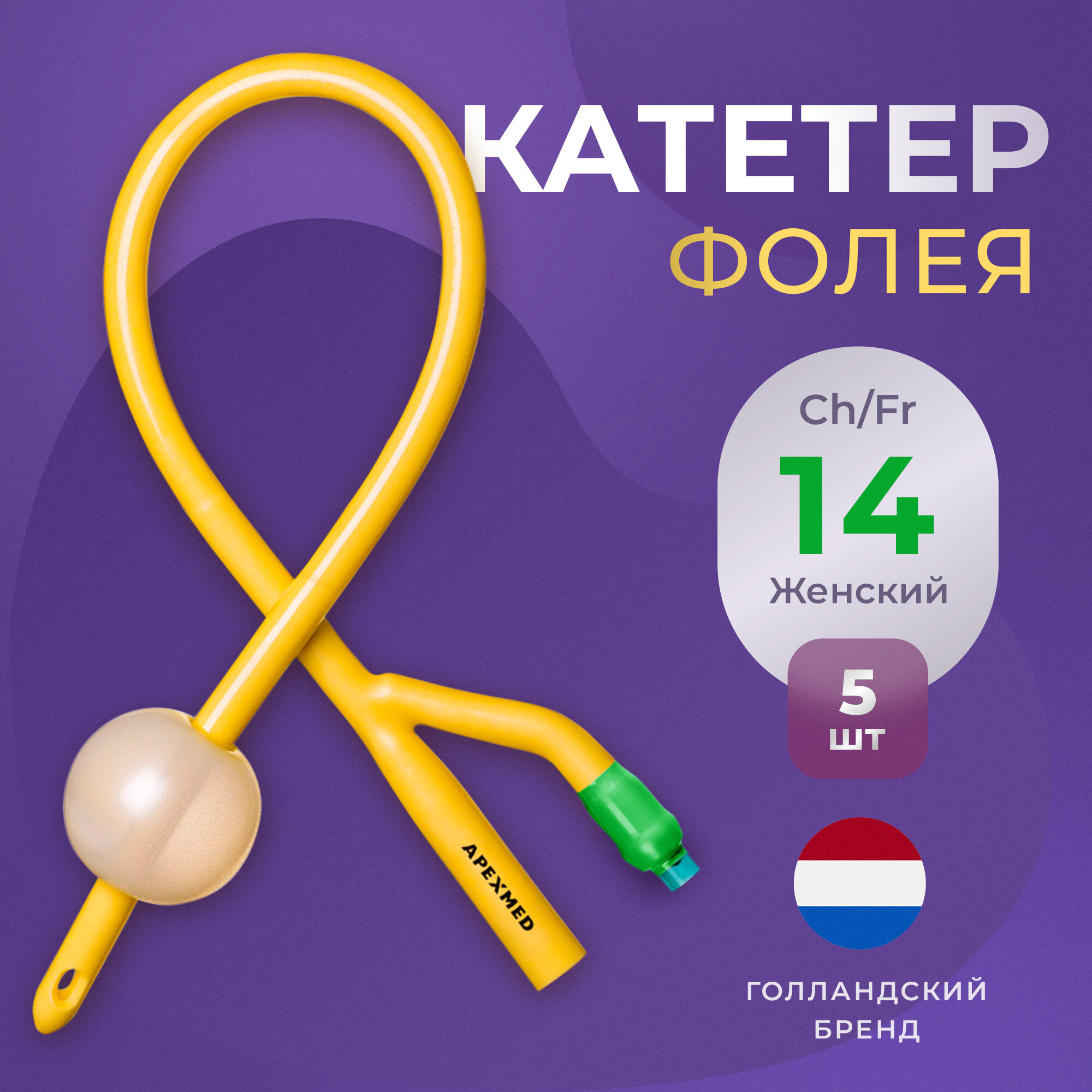 10 цен на Катетер урологический Фолея женский двухходовой, Ch/Fr 14, 5 шт, Apexmed